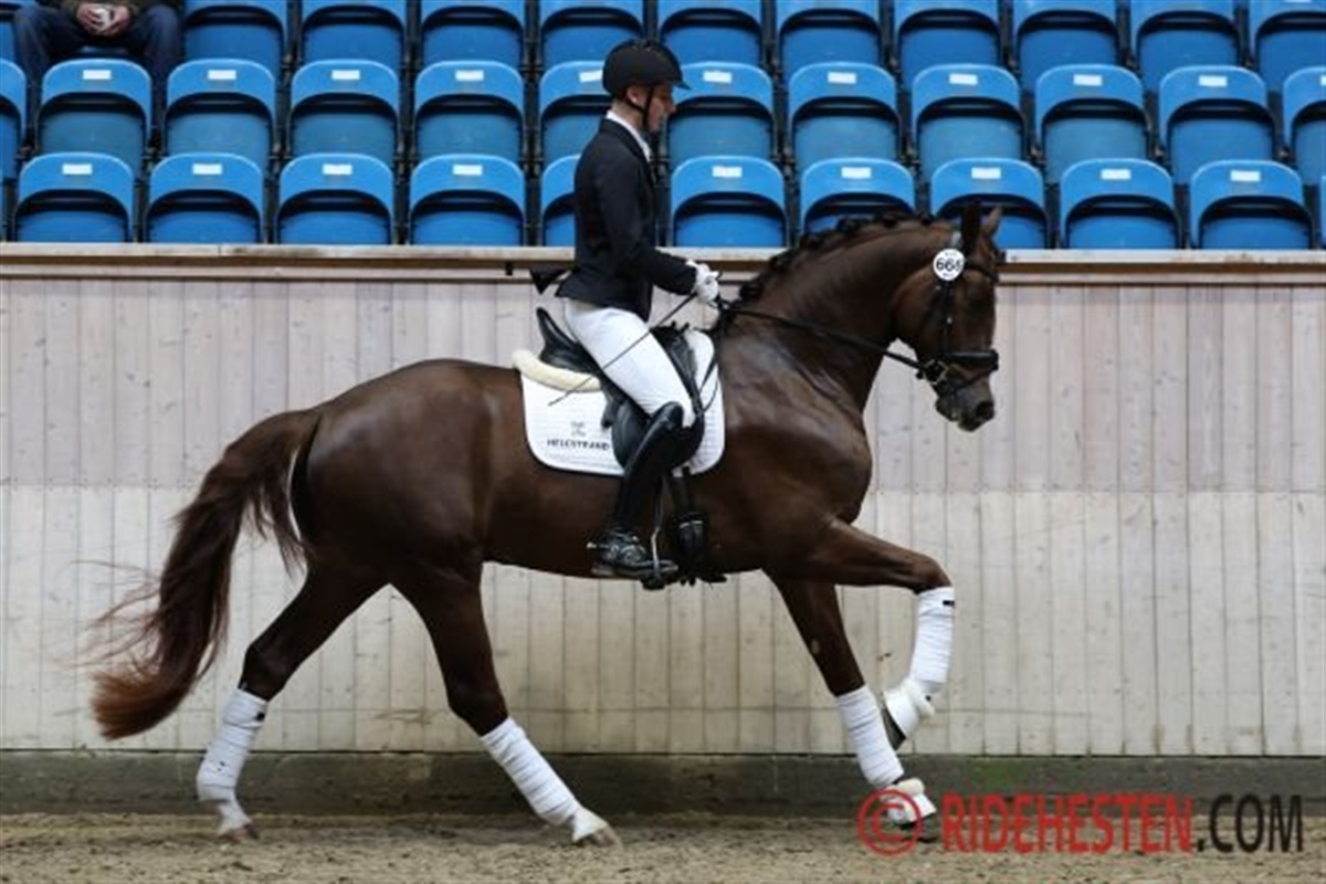 Escamour e. Escamillo/Ampère opdrættet i Tyskland og ejet af Helgstrand Dressage er kåret i udlandet, og efter fremvisning i dag under rytter opnåede hingsten 1 års avlsgodkendelse og er godkendt til afprøvning.