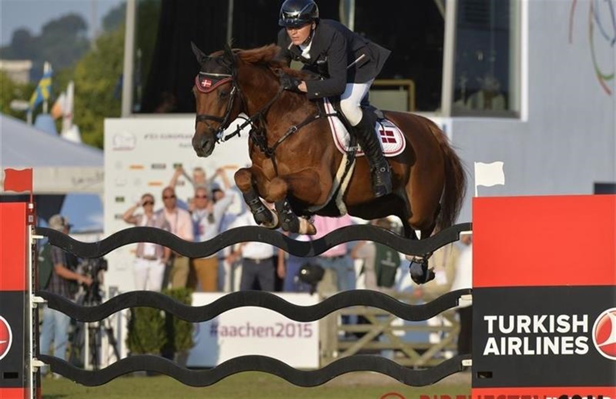 Danskerne var klar og motiveret for at give den en skalle i aftenens holdfinale ved EM. Kulissen var klar, men Søren Nørgaard Pedersens 10-årige Tailormade Chaloubet, bremsede hårdt på den store mur - to gange, og det betød afsked med parret. Det medførte et endnu større pres på de resterende ryttere, og måske især på Rikke Haastrup, som skulle på banen efter Søren. - Rikkes hest sprang til måske en 0 eller 4-runde, men efter det første nedslag, blev Rikkes ridning lidt præget af nervøsitet og det er helt fair, sagde landstræner Lars Nørgaard Pedersen. Rikke sluttede med 17 fejl.