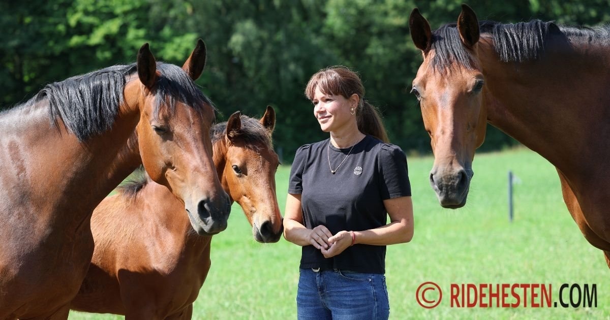 – Den ene, Midt-West Sunrise, har jeg lige startet op i ridning, hun har føl ved siden, et hingsteføl efter Vitalis, som blev solgt, da han var en måned gammel. Den anden, Midt-West Present, er tre år og i ridning hos Marie Witt. Hun skal til sadelkåring på Vilhelmsborg i august. Hun er drægtig med Be Sure, og vi håber på et hoppeføl.