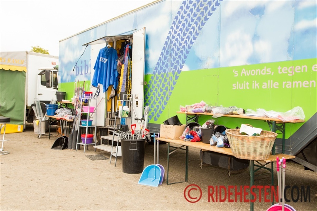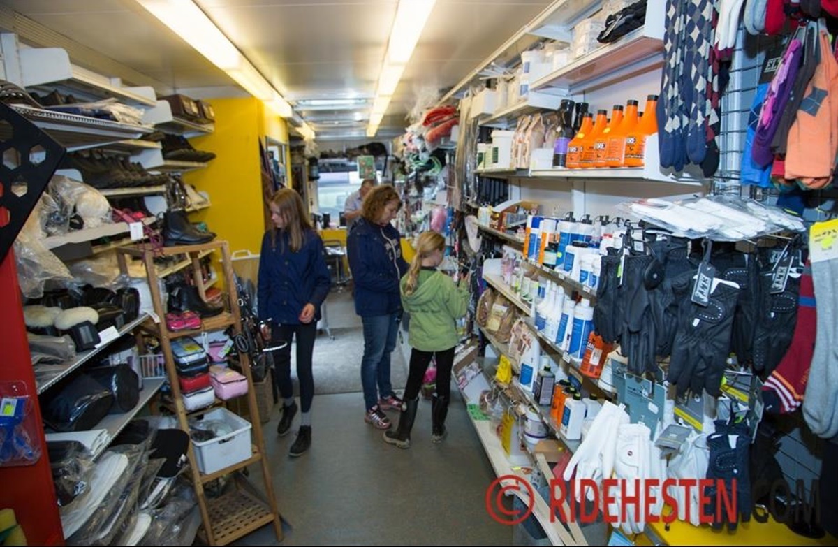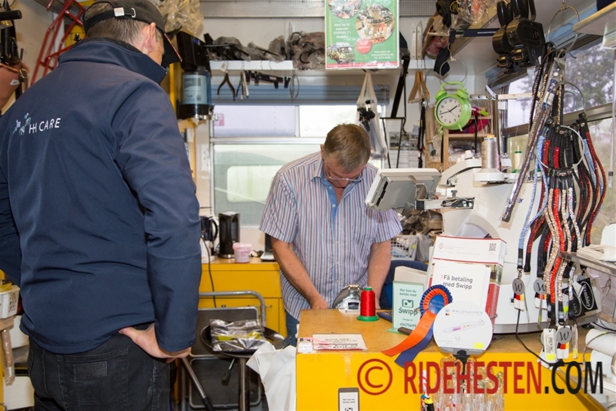 Forretningsmanden Ove har ikke lægere en fast butik, men tager afsted til stævnerne med sin lastbil pakket med udstyr næsten hver weekend. - Det er det sjoveste, fortæller han. Ove har selv haft masser af forskellige dyr og heriblandt også heste, dog primært på hyggeplan og til skovtursridning, men det er der ikke tid til længere... Nu går al tiden nemlig med den rullende rideudstyrsforretning.
