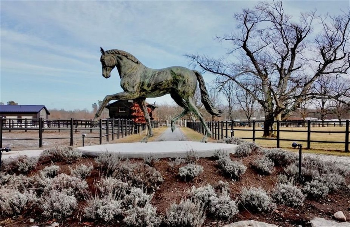 Statuen af Donkey Boy er den anden skulptur skabt af Brigitte Boss, som pynter foran hovedbygningen. I forbindelse med Dansk Varmblods 40-års jubilæums år i 2019 blev der rejst en statue af en hoppe med føl.