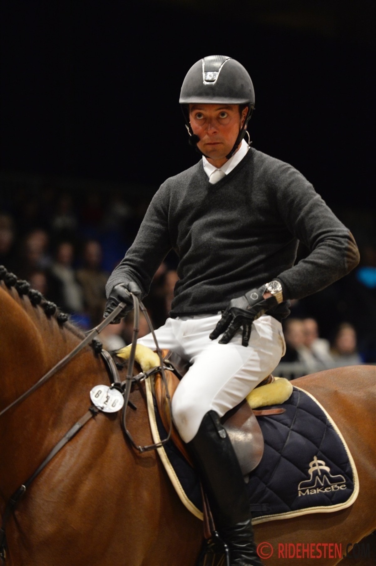 - De unge heste i championatet er blevet sat på prøve i de her dage i Herning, som Lars Bak understreger, da han sætter sig i sadlen på dagens første hest Lajgårdens Chico P e. Chico’s Boy/Come Back II (opdr. Karina Josefsen & Mogens Nielsen) og ejet af Linda Petersen, som han i dag skulle teste. -Det føles jo fantastisk må jeg sige, sagde Lars Bak om sin tur på Chico P. da han testede den på en rimelighed høj okser og tilføjede: - Den gør det nemt og ukompliceret.