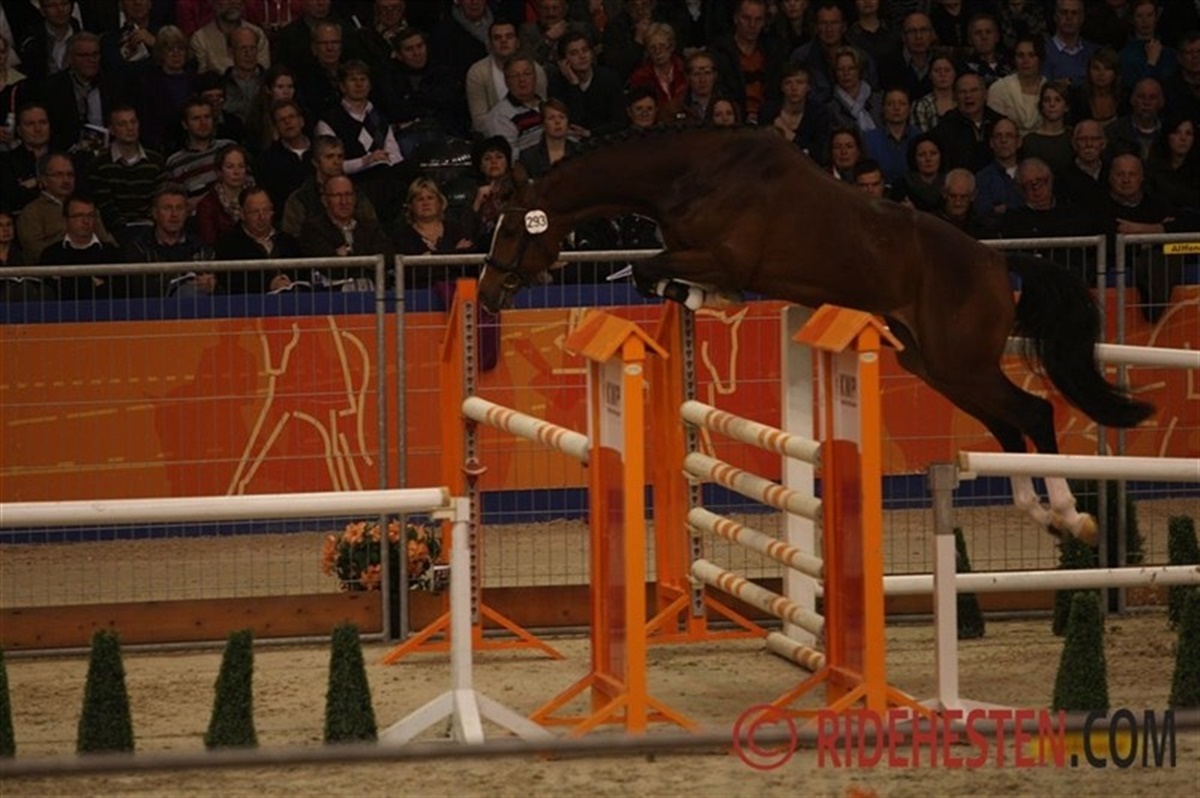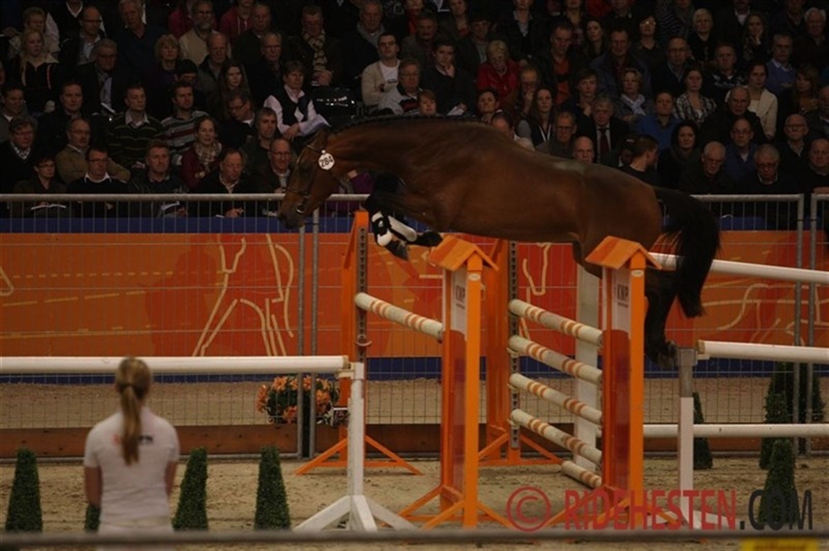 Nr. 154 er fra stutteri VDL og efter deres egen hingst Emmerton VDL, som startede sin karriere hos Flyinge i Sverige og nu starter internationalt under Jur Vrieling. Resultat: Vinder: nr. 154 e. Emmerton/Chin Chin Andenplads: nr. 293 e. Vittorio/Odermus R Tredjeplads: nr. 284 e. Verdi/Fuego du Prelet Fjerdeplads: nr. 262 e. Ultimo/Kreator xx Femteplads: nr. 6 e. Alicante HBC/Memphis Sjetteplads: nr. 67 e. Cantos/Lux Syvendeplads: nr. 85 e. Cardento/Nimmerdor Komiteen var på udkig efter en moderne hest og de mener at have fundet en god kollektion til 50/70-dages testen i Stegeren. - Ridelighed er det vigtigste at efter, en hingst, der bliver ved med at være urolig med tungen giver fx ikke et godt indtryk, udtalte formand Daan Nanning. Dagens ord var kompensation - mellem individuelle talenter og en præstationsfyldt afstamning. Nogle hingste blev afvist på trods af fantastiske springegenskaber, pga. manglende resultater i hoppestammen. - Hoppestammen giver os en bedre forsikring om arveligheden af hingstens evner.