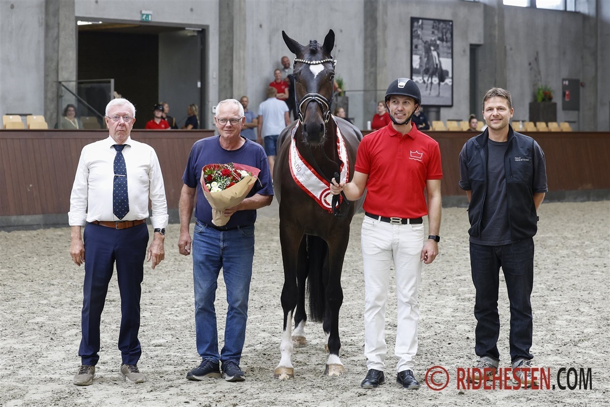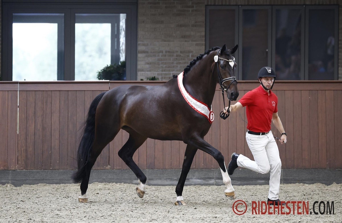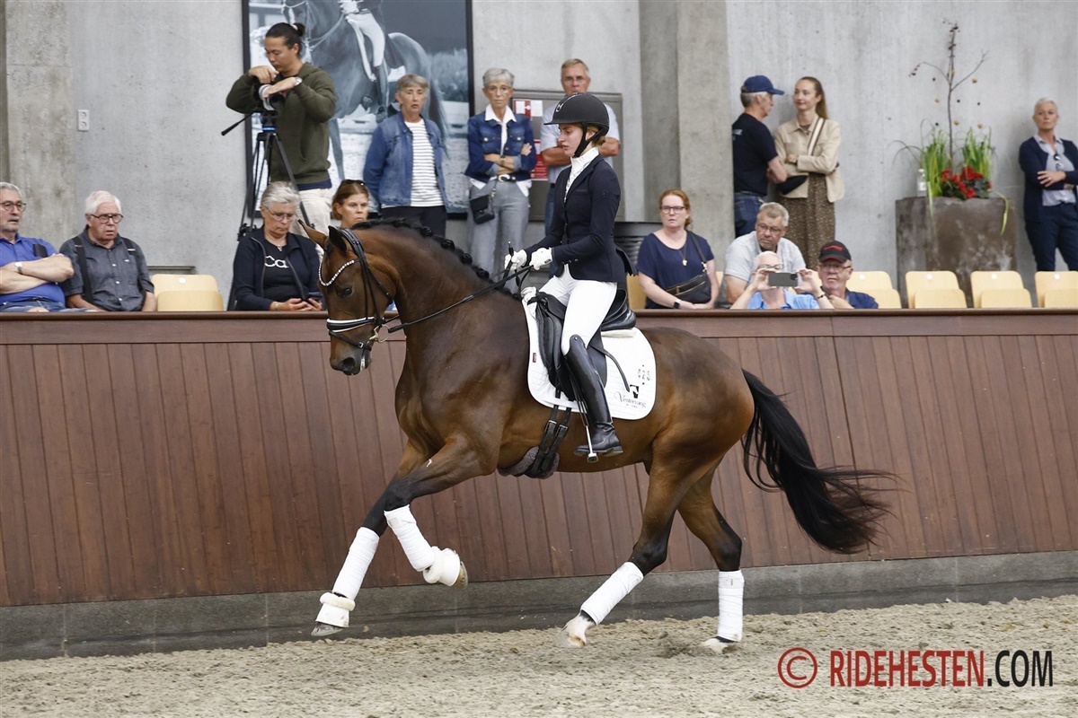 – En storrammet, højtstillet vallak, med et dejligt udtryk, og han har virkelig overbevist os i rideprøven. Han fik 7,5 for sin taktfaste skridt, og 8,5 for sin dejlig rummelige og smidige trav, og han shiner helt i galop, hvor han arbejder rummeligt med stor bæring 9,0. Han har vist sig meget ridelig og fået 8,5 samt 8,5 i kapacitet.