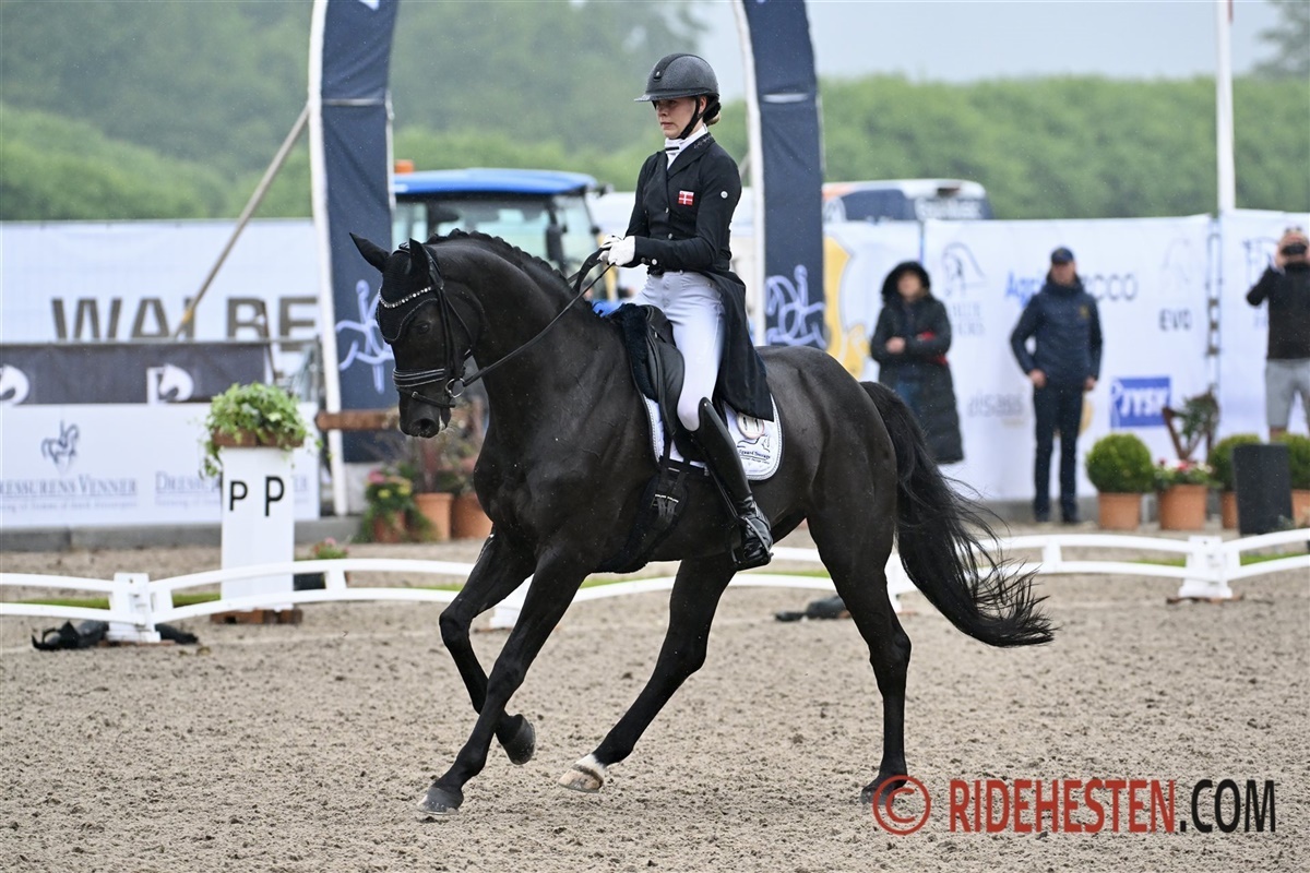 Andenpladsen gik til Blue Hors-rytter Sophia Ludvigsen, der er tilbage på stævnepladserne efter Blue Hors' stævnepause. I sadlen på den 8-årige DV-vallak Højgaardens Zacksmir e. Blue Hors Zack/ Sir Donnerhall I (opdr. Stutteri Højgaardens Heste) red hun sig til en andenplads med 71,914%.