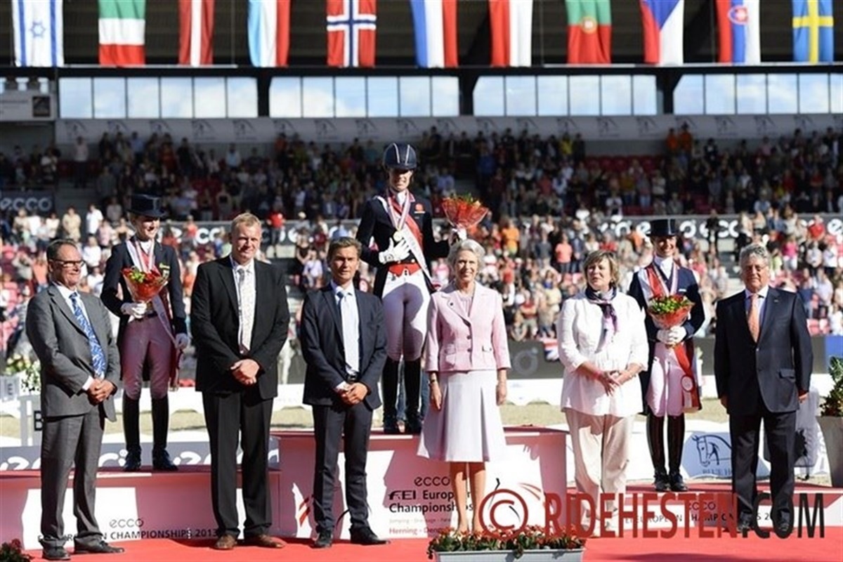 Det sidste sæt af 16 sæt medaljer ved ECCO FEI European Championships i Herning er blevet uddelt i eftermiddag. I Blue Hors FEI European Dressage Championships blev den sidste af tre sæt medaljer uddelt i Grand Prix Kür søndag eftermiddag.