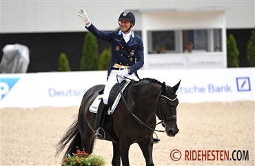 I dag gentog hun den succes ved at tage sin tredje sejr ved stævnet, denne gang i küren. Her leverede den danske ekvipage igen en solid præstation, som blev belønnet med 75,375 procent af klassens dommere. Dommer ved H var endda helt oppe på 77,050 procent.