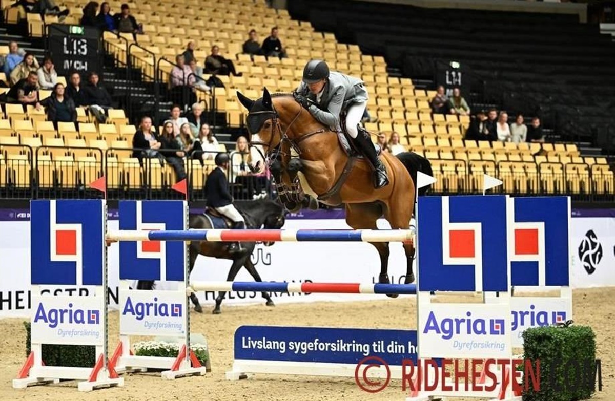 Den 11-årige dansk varmblodshoppe Gammelgaards Carola e. Companiero/ Aston, der er opdrættet af Jørgen og Carsten Gammelgaard, blev med sin franske rytter Gregory Cottard placeret som nr. 5 i den 5-stjernede 150 cm høje klasse søndag, hvor Andreas og Lady Corlina blev nr. 7. Parret kom fejlfrit igennem banen på 69,59 sek. Det er et virkelig flot resultat af en DV-hest, og Carola var tilmed den eneste DV'er i klassen.