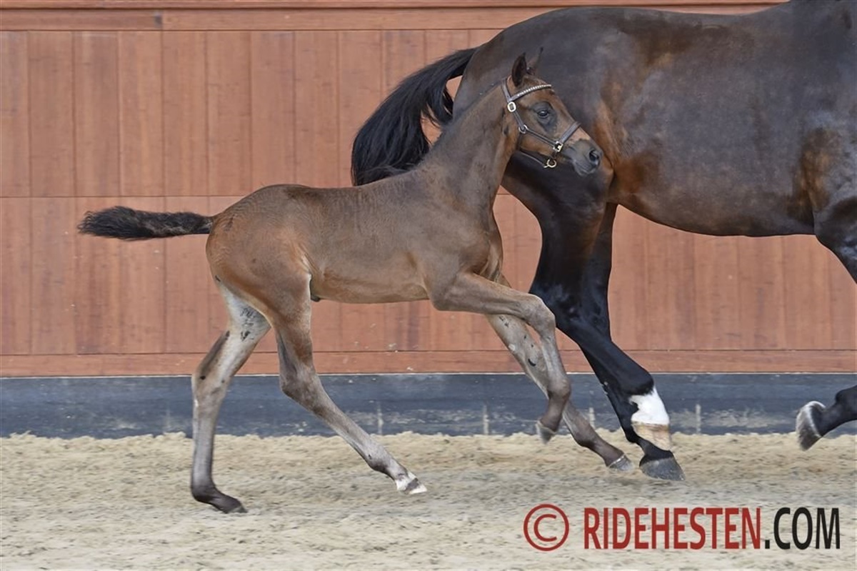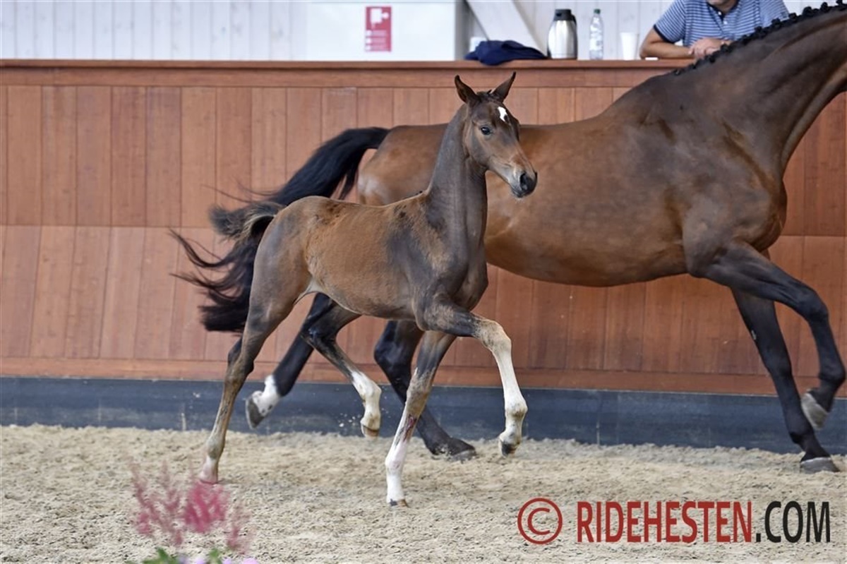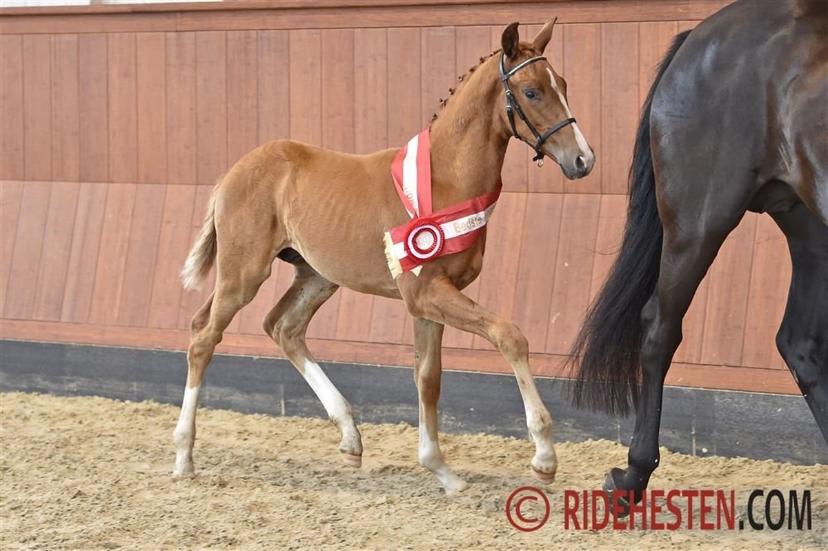 Dagens dressurbetonede hoppeføl blev Maskedals Thriller e. Jovian/Sezuan med bronzemedaljehoppen Maskedals Beat It som mor. Føllet der er avlet af Helle Møller Andersen & Per Christensen og nu ejet af Helle Møller Andersen, Per Christensen, Emma Ahlberg og Lars Ringkær, blev beskrevet som et virkelig vidunderligt, ædelt og feminint føl. Udover den fornemme titel, blev føllet også inviteret med til Dansk Varmblods Krafft Eliteskue og det samme var gældende for dagens andet bedste dressurbetonede hoppeføl, Velina By J&J e. Vaderland/Blue Hors Romanov fra Malene Jakobsen og Palle Juhl i Bylderup-Bov. Avlskonsulent Karina Christiansen beskrev føllet som et føl med massere af selvtillid og en med en hel prima travbevægelse.