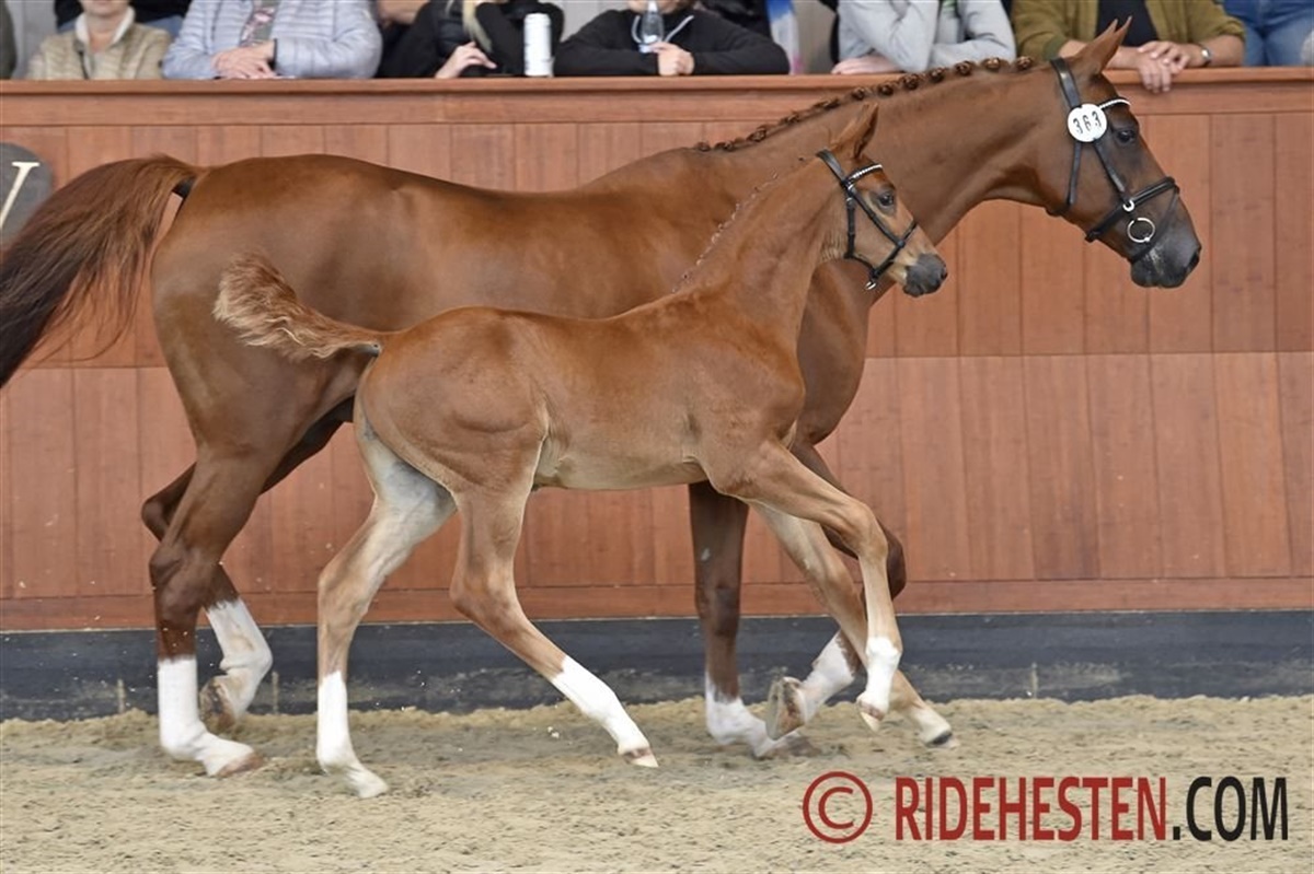 Stutteri Hillock v/Trine Hermansen og Leif Konradi har snart prøvet at have vinderføl adskillige gange og det var også tilfældet i dag, da dommerne valgte Gracia-X Hillock e. Gracieux H.A.P/Favorit Ask som dagens bedste springbetonede hoppeføl. Det elegante og velfungerende føl en meget stærk hoppestamme bag sig, som har lavet flere kårede hingste og medaljehopper, her i blandt føllet egen mor, bronzemedalje hoppen French Love Hillock.