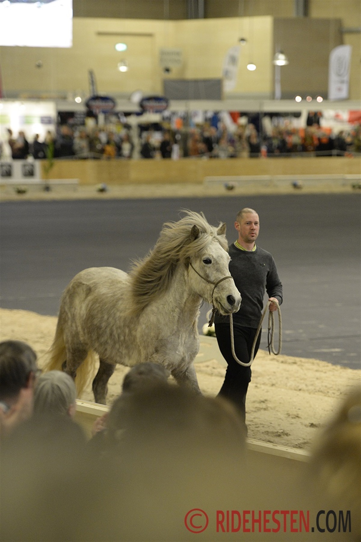 De lidt nyere heste fik lov til at gå en runde på banen før gallashowet, så de kunne vænne sig til omgivelserne. Tilskuerne hjalp til med massive klapsalver - god miljøtræning!