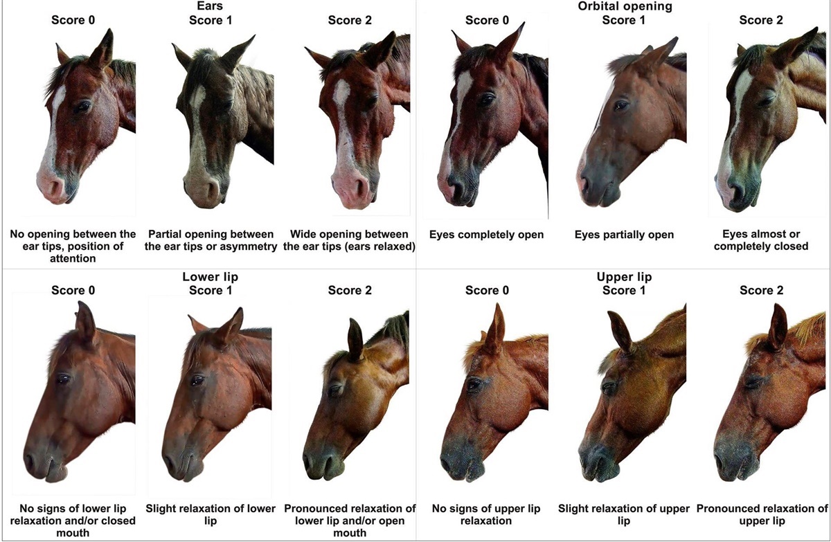 Udfra den skala, har brugt tre ud af de seks ansigtsudtryk som skalaen er baseret på til at vurdere hesten med.