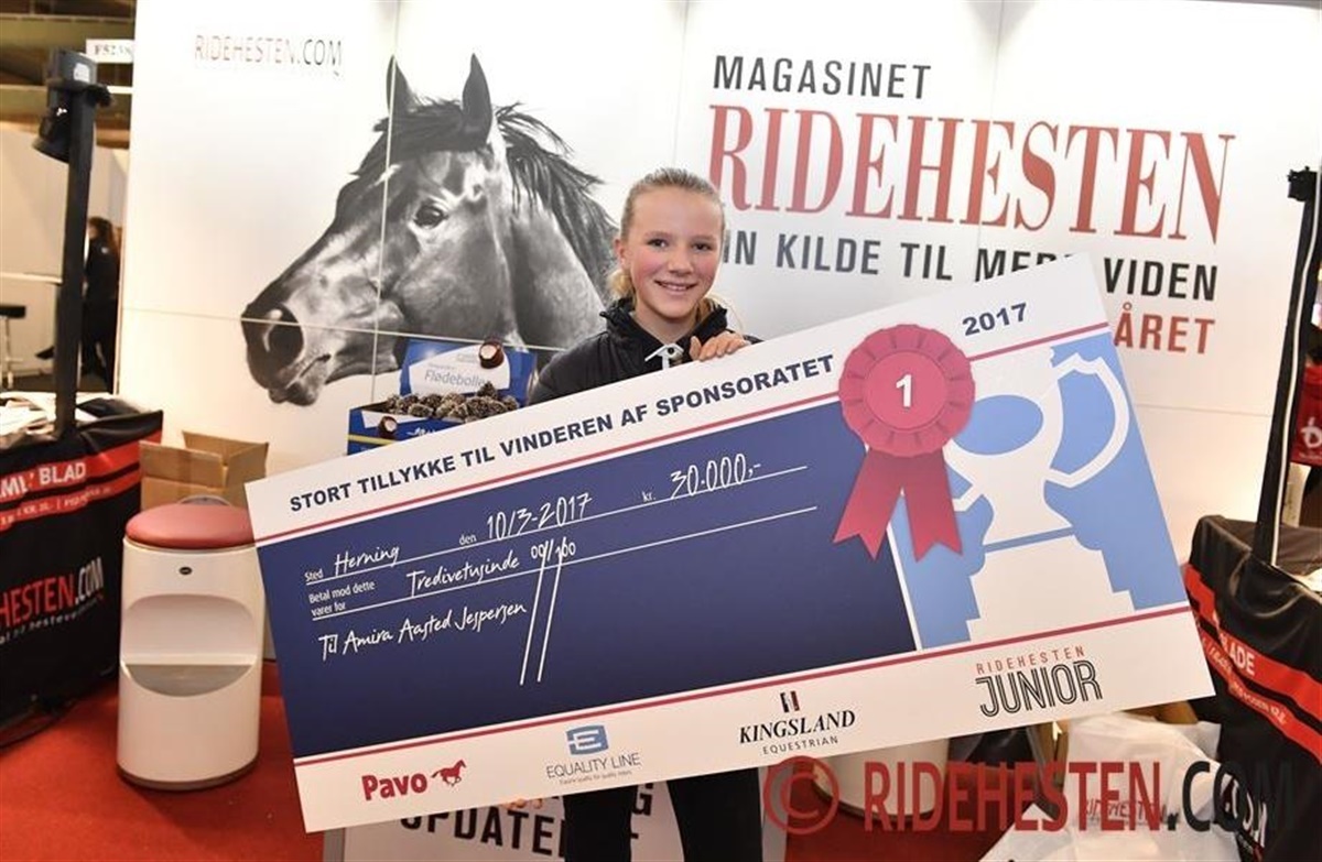 Sidste års vinder Amira Aasted Jespersen fortæller: - Den konkurrence som jeg vandt sidste år, er nu startet op igen, men denne gang på Facebook, og i år kan du endda vinde en større præmie end sidste år, du kan nemlig vinde for 10.000 kr. foder fra Pavo. For 10.000 kr. tøj og udstyr fra Kingsland. For 10.000 kr. udstyr fra Equalityline og 10.000 kr. i kontanter fra ECCO. 1 års abonnement fra Rid bedre TV fra Dressurens Venner. I år bliver der også en vinder i både dressur og springning, som hver vinder en total præmie på 40.000 kr. pr. rytter.