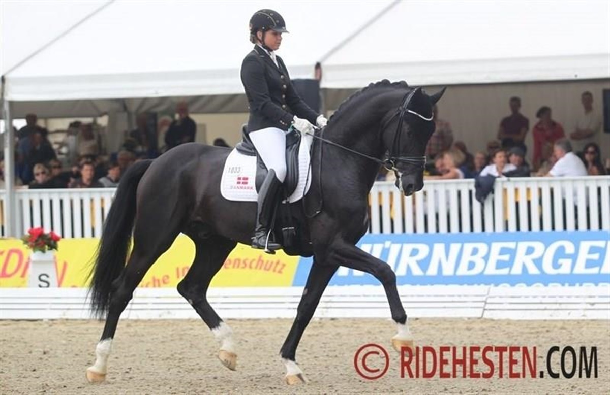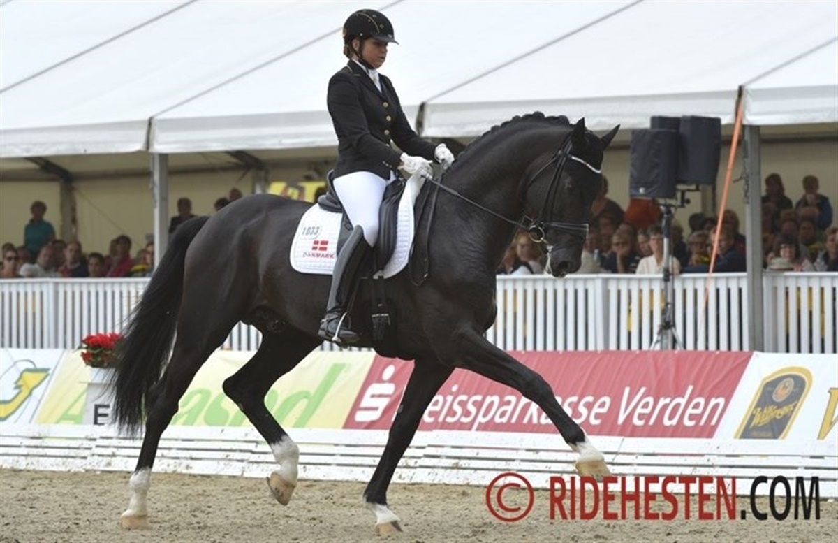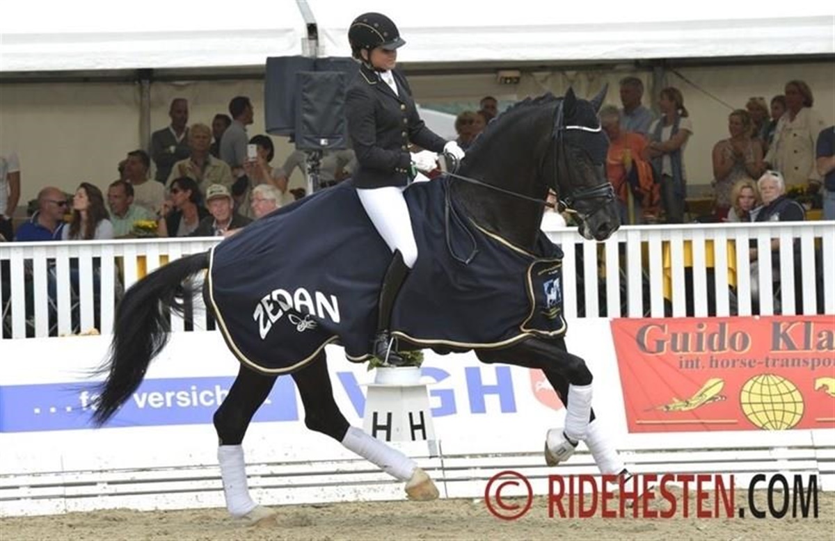 DV-hingsten Sezuan e. Blue Hors Zack/ Blue Hors Don Schufro (opdr. Linette Møller), der tidligere er materialprøvevinder og fløjhingst i Dansk Varmblod, viste sig i dag fremragende under sin tyske rytter Dorothee Schneider, der med et wildcard starter for Danmark.