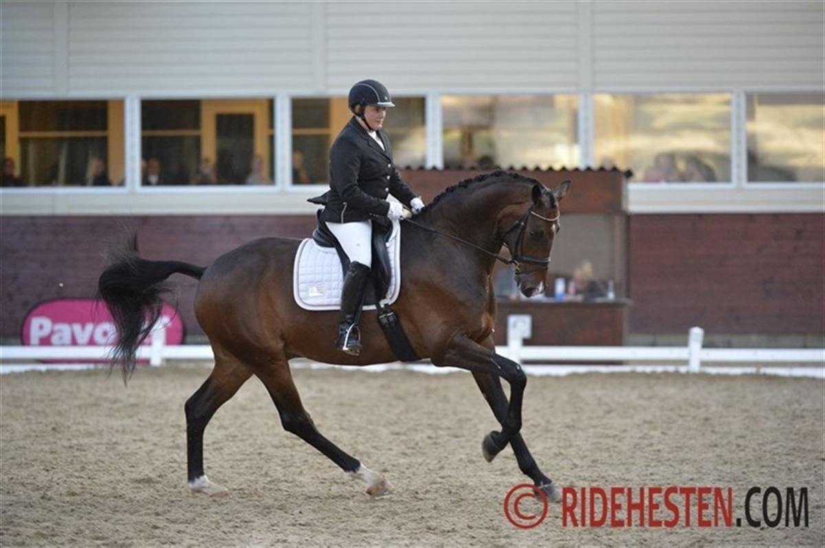 Lotte Wiuff Staarup og en af de velgående heste fra Gørklintgård, Gørklintgårss Shy Boy e. Sunny-Boy kom ind på femtepladsen i mellemrunden med 8,14 points.