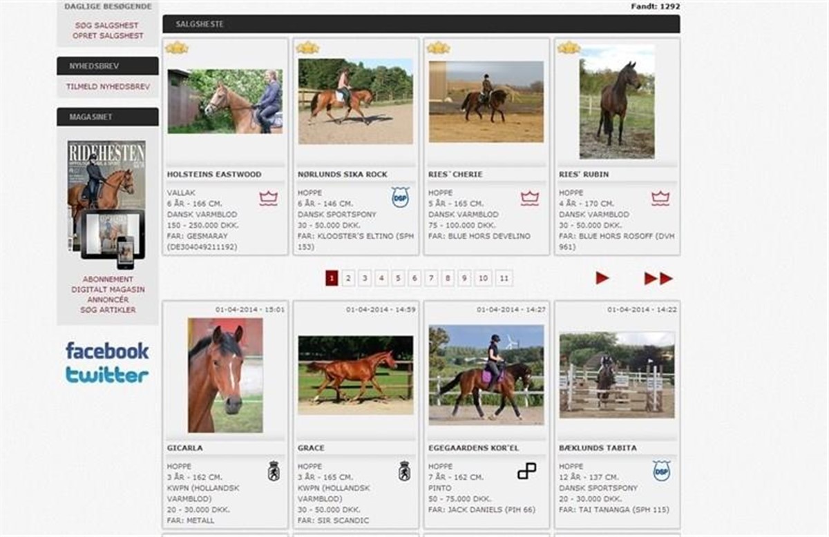 Her er det nemlig let og enkelt for køberne at finde frem til netop den hest, de søger. Med gode søgemuligheder og flotte annoncer er Ridehesten.com’s salgsdatabase det optimale sted at sætte sin hest til salg, og det optimale sted at finde sin nye drømmehest.
