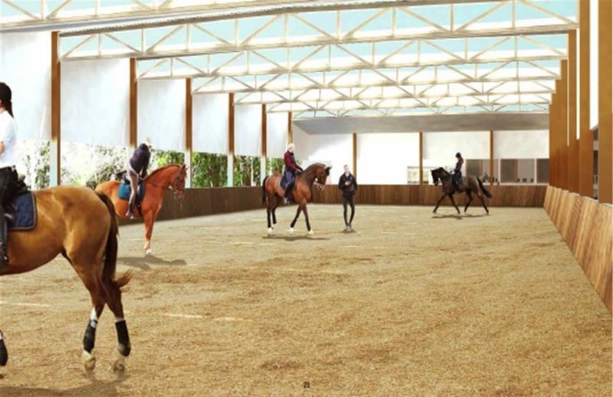 Udendørs vil der blive tre dressurbaner, en springbane og en opvarmningsbane. Dertil kommer en række stier for alle brugere med bålpladser, udendørs fitness, shelters til overnatning, agilitybaner og petanquebaner samt boldspilsområde. Cyklisterne får et overdækket område, der bliver et kombineret værksted og mødested.