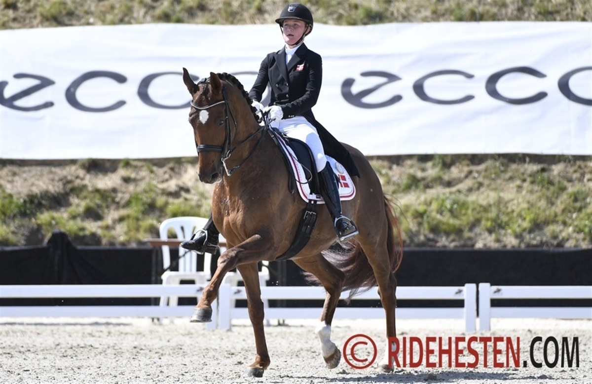 Sara og Sandra er meget kede af, at de ikke kan komme til England og følge Der Harlekin B, men de skal begge ride DM i dressur for henholdsvis junior- og ungryttere her i weekenden i Ringsted, hvilket de begge ser meget frem til. Sara har haft en forrygende sæson på sin nu faste makker Skovborgs Romadinov med seks internationale sejre i år og senest EM-bronze for hold i Frankrig. Sandra har ligeledes fundet formen med Cavanillas W og sejrede ved det internationale stævne i Uggerhalne.