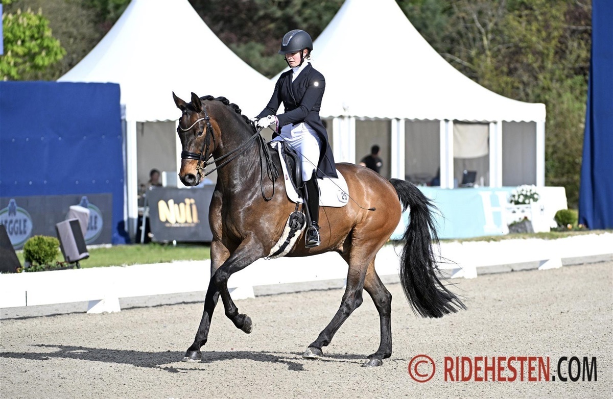 Den sorte vallak har tidligere haft stor succes på lille tur-niveau med Anna, og de har blandt andet deltaget ved UVM for 7-års heste i 2022, mens de samme år vandt finalen for 7-års ved Pavo og Dansk Rideforbunds championater. Den nu 9-årige vallak viste tydeligt, at der venter Grand Prix i fremtiden, og selvom der indfandt sig nogle fejl undervejs i dagens program, var Anna godt tilfreds med en placering som nummer fire med 70,15%.
