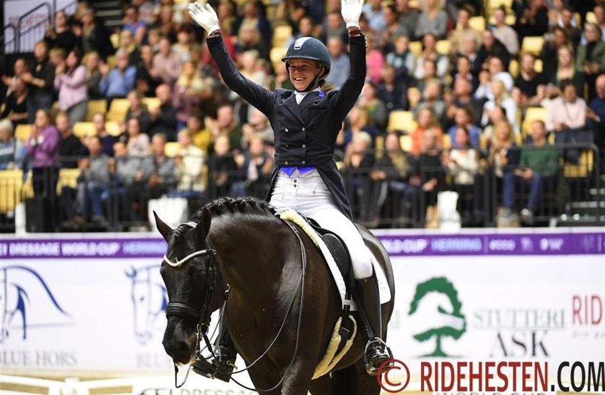Stemningen var intens, og flere publikummer måtte knibe en tåre, da storskærmen viste en film med Agnete og JoJo som hyldest. Det stærke makkerpar red deres Grand Prix til flotte 72.609 procent og skal derfor ride World Cup Kür i morgen.