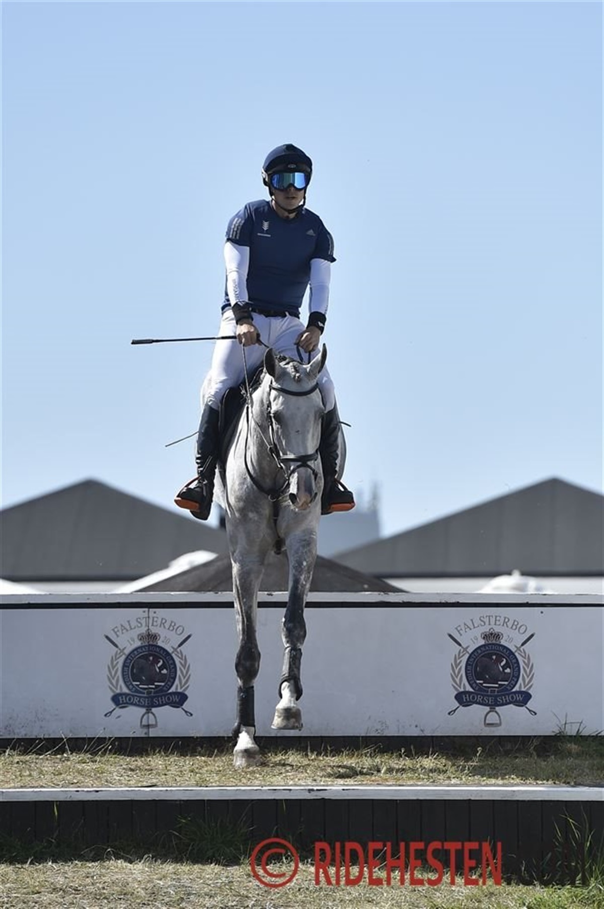 Danske Vicky Mathiesen og Dejó, der er 16 år, har vundet Falsterbo Hunting de seneste to år, og de så meget skarpe ud på banen igen i år. Da Vicky kom til start var det den svenske landsholdsmilitaryrytter Pontus Hugosson, som havde lagt sig i front med All of Me en 7-årig svenskfødt hoppe, som han han var meget fornøjet med på terrændelen. Han gik i mål på 180,7 sekunder, og det var den tid, som Vicky jagtede. Hun var to sekunder efter ved mellemtiden, og et sekund foran, da hun red ind på springstadion til de afsluttende forhindringer forand de mange tusinde, jublende tilskuere. Og hun stoppede tiden på 178,71 sekund. - Jeg troede det var nok, sagde hun efter ridtet, men det skulle vise sig, at de 40.000 skr. skiftede ejer netop inde på stadion, hvor Jonna Friman Hocke red Lady Grey i en flyvende finish og til sejr med en tid på 177,74 sekunder. Den 18-årige hoppe er egentlig blevet pensioneret til avlen, men hun trives ikke som mor og avlshoppe, og derfor er hun nu igen i sporten, men på et lavere niveau.