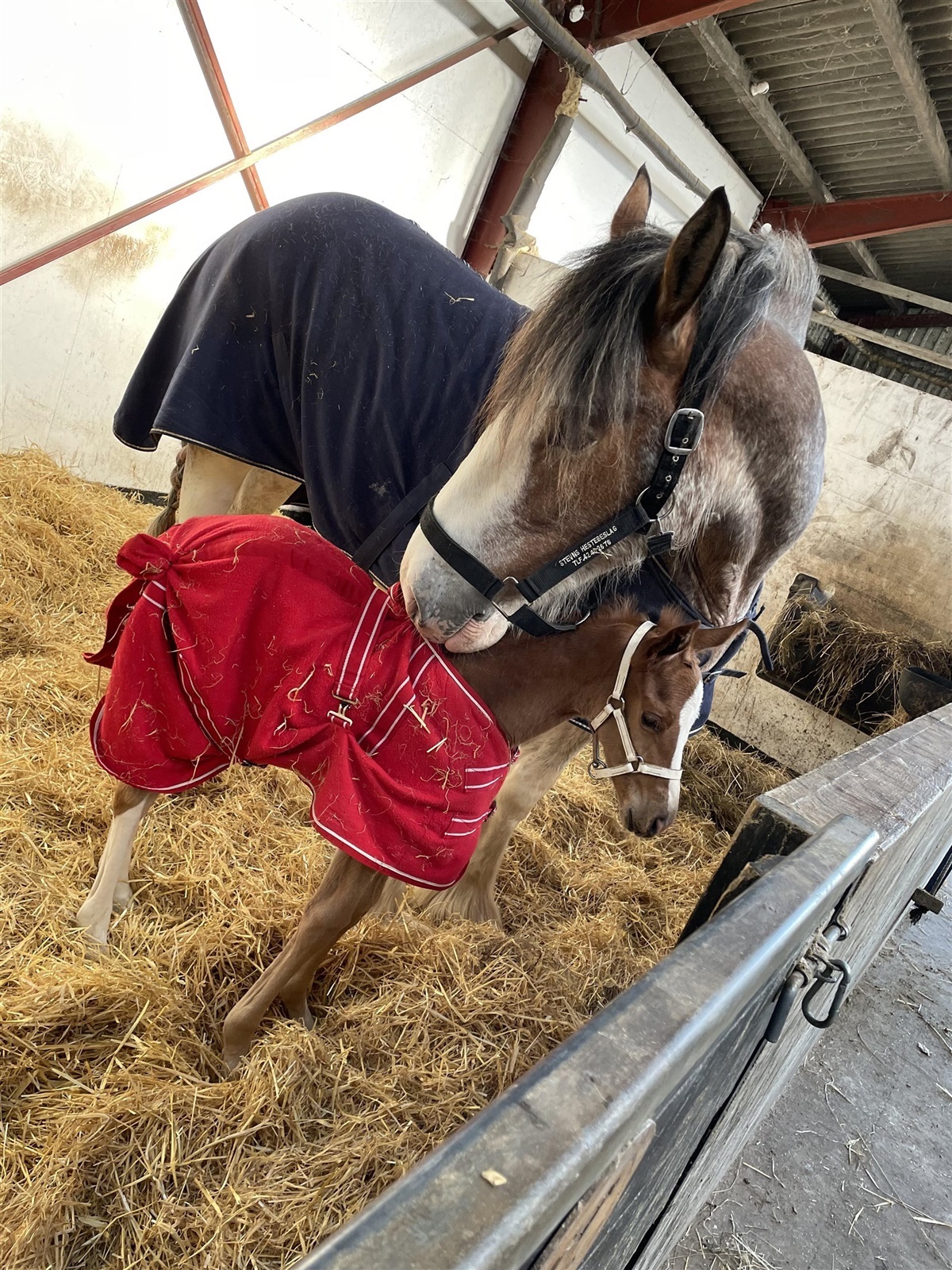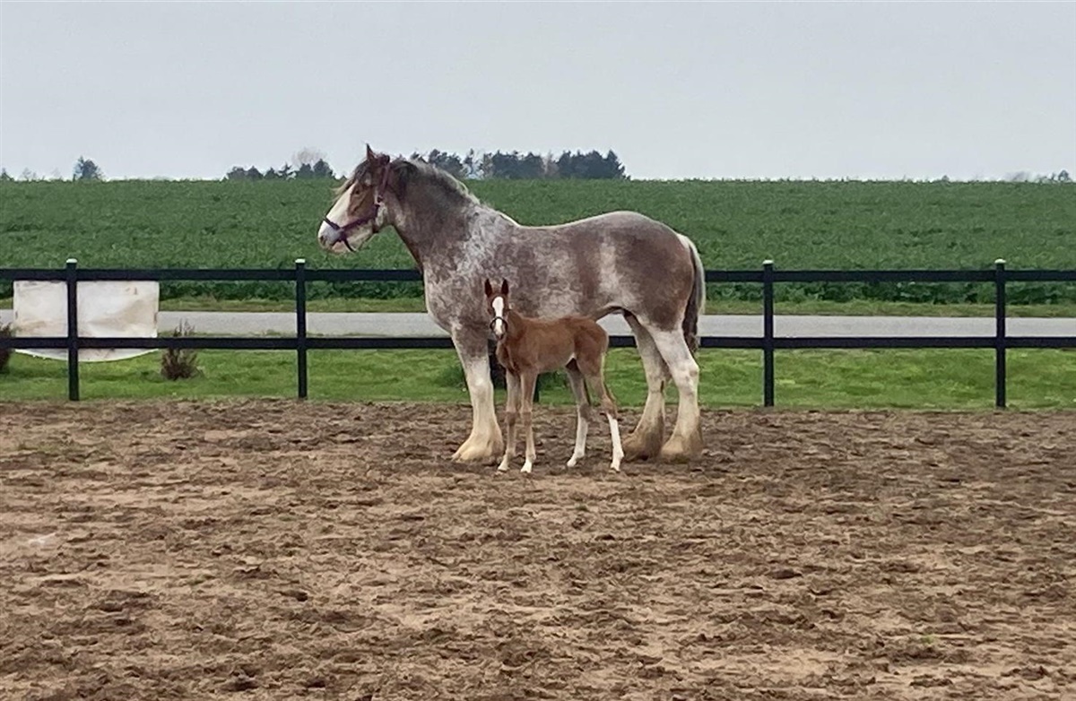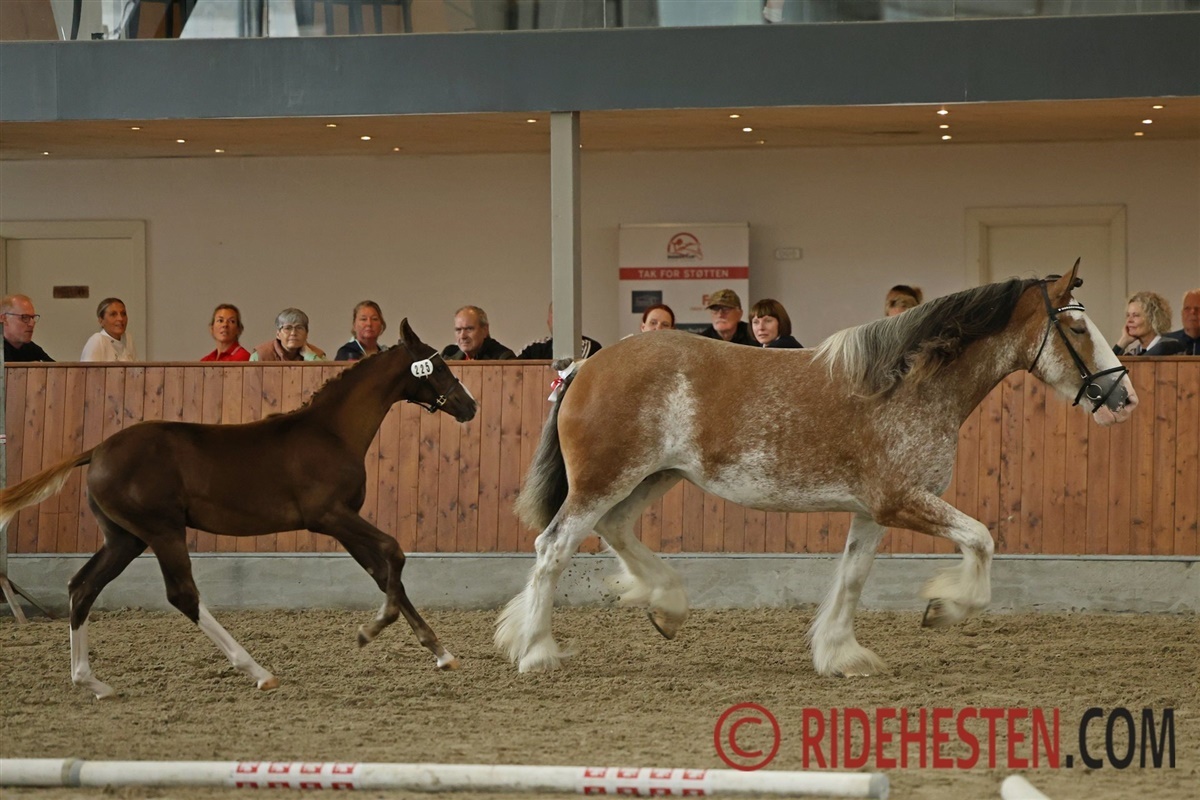 Der var ikke noget at sige til at de fik meget opmærksomhed fra publikum, for Greenknowes Caledonia Louise er en af de bare ca. 45 clydesdaleheste, der findes i Danmark. Hun måler 178 cm og vejer 800 kg, og så laver hun op mod 4 gange mere mælk end en varmblodshest! Trods hendes størrelse virkede hun dog imponerende tryghedsskabende og kærlig og viste sit føl fint rundt på banen. På dagen beskrev dommerne føllet med et godt udtryk og god bevægelse i alle tre gangarter.