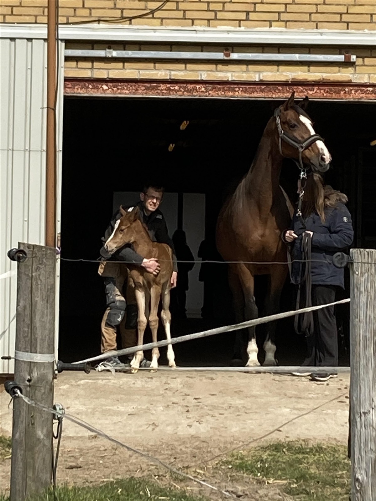 Kristina smurte føllet ind i moderkagerne, hoppen fik bind for øjnene, men lod føllet patte med det samme. Først herefter blev hoppen vist, hvad der stod ved siden af hende og nu skulle Kristina stille og roligt have hende til at acceptere Bequeen. Efter seks timer, begyndte hoppen at indkapsle og vrinske efter hendes nye føl, og det stod klart at en ny familie var skabt succesfuldt: – Familien ovre på Sjælland har passet godt på mit føl, vi har holdt kontakten og det har virkelig udviklet sig til et godt venskab og samarbejde. Fortæller Sara om samarbejdet med Kristina og hendes familie.