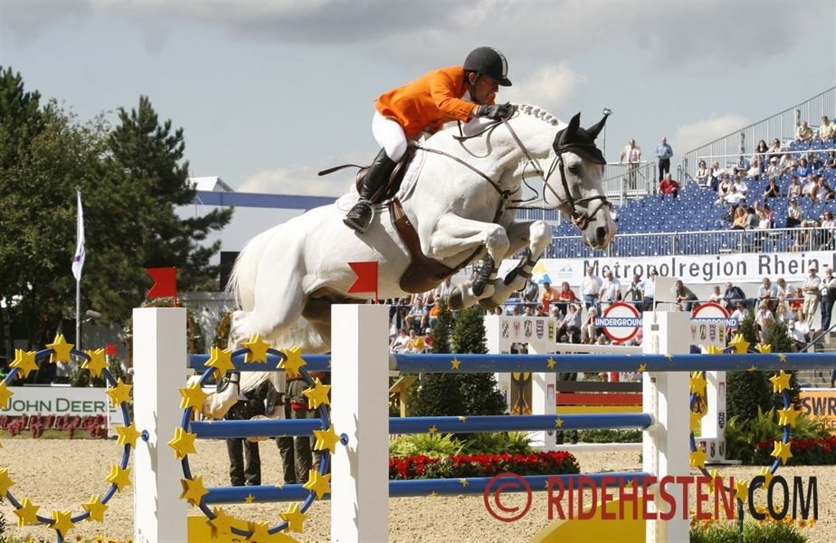 Holstenerhingsten Caspar e. Cassini I/ Caretino har levet det meste af sit liv i Holland under navnet Berlin og i en stor del af sin sportkarriere også med sponsornavnet Eurocommerce.