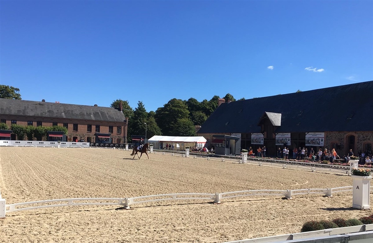 Der er sol, sommer og glade ryttere på Vilhemsborg i dag, der endelig har fået startet EM for ponyer op. Lige nu er der fuld gang i den på gårdspladsen, hvor første afdeling af dressurkvalifikationen for holdkonkurrencen er i gang. Her kl. 15.18 skal den første danske rytter, Kristian Würtz Green med Lilo L være klar til at repræsentere Danmark, næste danske rytter skal på i aften kl. 18.06 – og det er danske Victoria Cecilie Bonefeld Dahl med Gambys Hanneken WE.