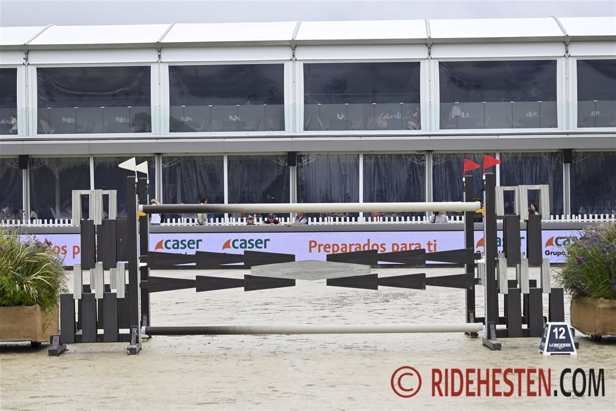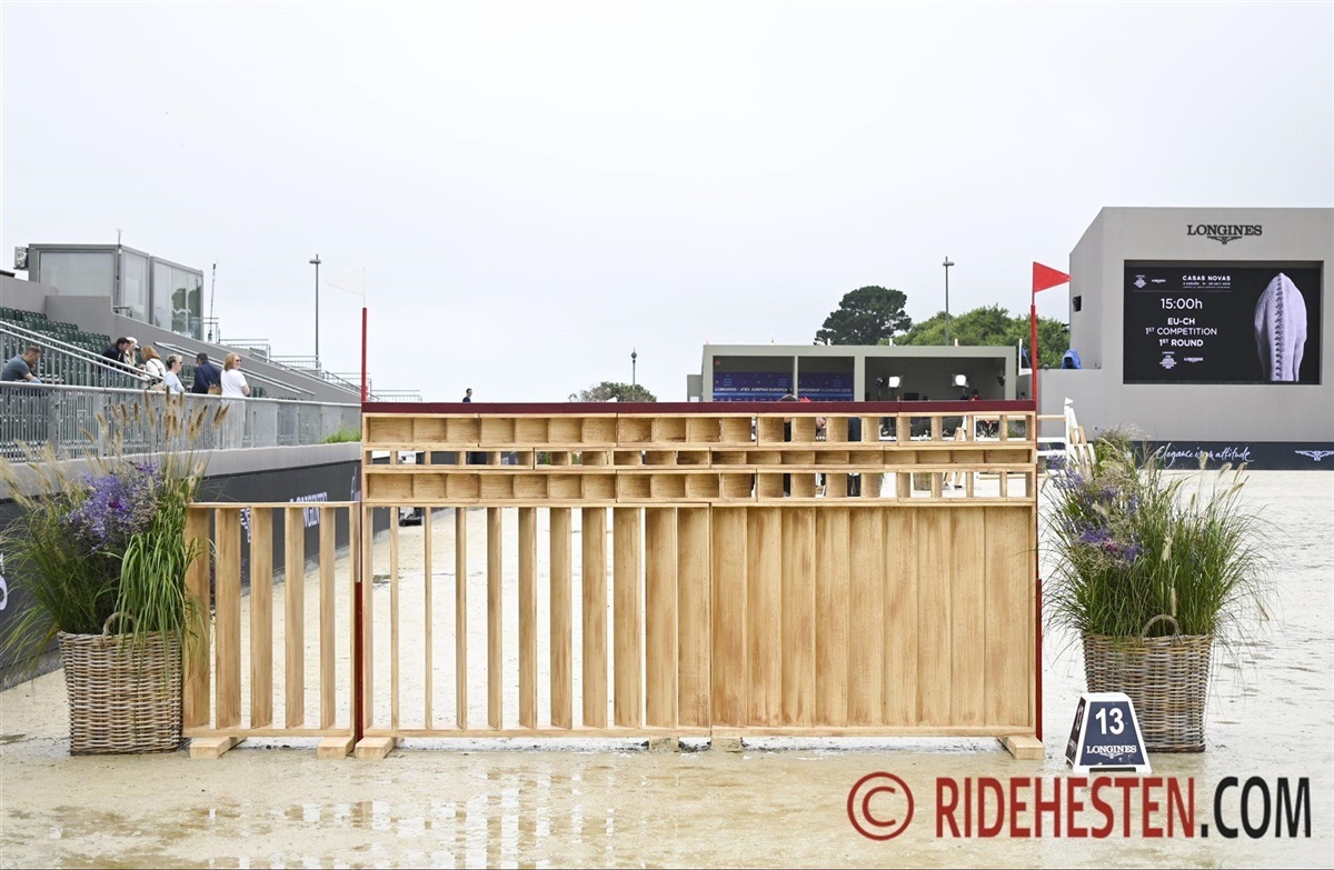 Herefter rider man over på langsiden langs tribunen, hvor der rides en mur, der er lavet i et specielt design, man kan se igennem. Det er forhindring nr. 13. Foto: Ridehesten.com/Annika Knudsen Lorentsen