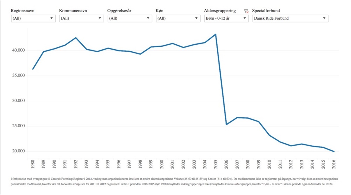 Selvom den sidste forbundsundersøgelse er fra 2014, bakkes tendensen op af forbundets medlemstal og statistikker om ridesporten fra Danmarks Idrætsforbund.