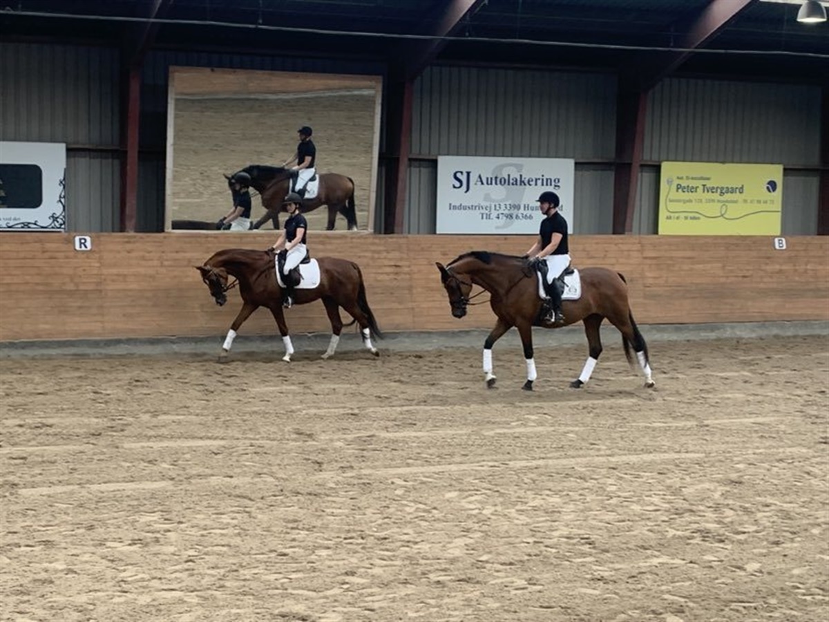 Efter lille pause rykkede alle i ridehuset, hvor beriderelev Marianne Øveraas Ellingsen og berider Andreas Emil Larsen fremviste to skønne, unge heste, nemlig 4-årige Dahlia V. e. D'avie/ Blue Hors Don Schufro (opdr. Iben Leere Kamp), der netop er udtaget til eliteskuet, samt 5-årige SRDH Verona e. Valverde, ejet af Anne Lyngby.