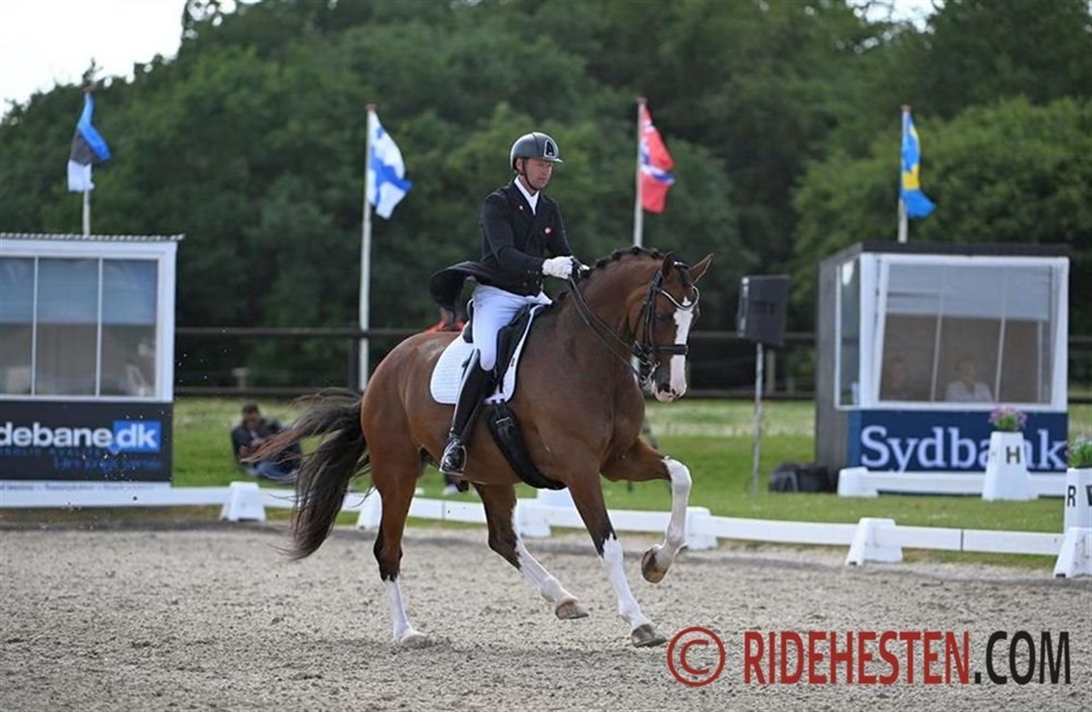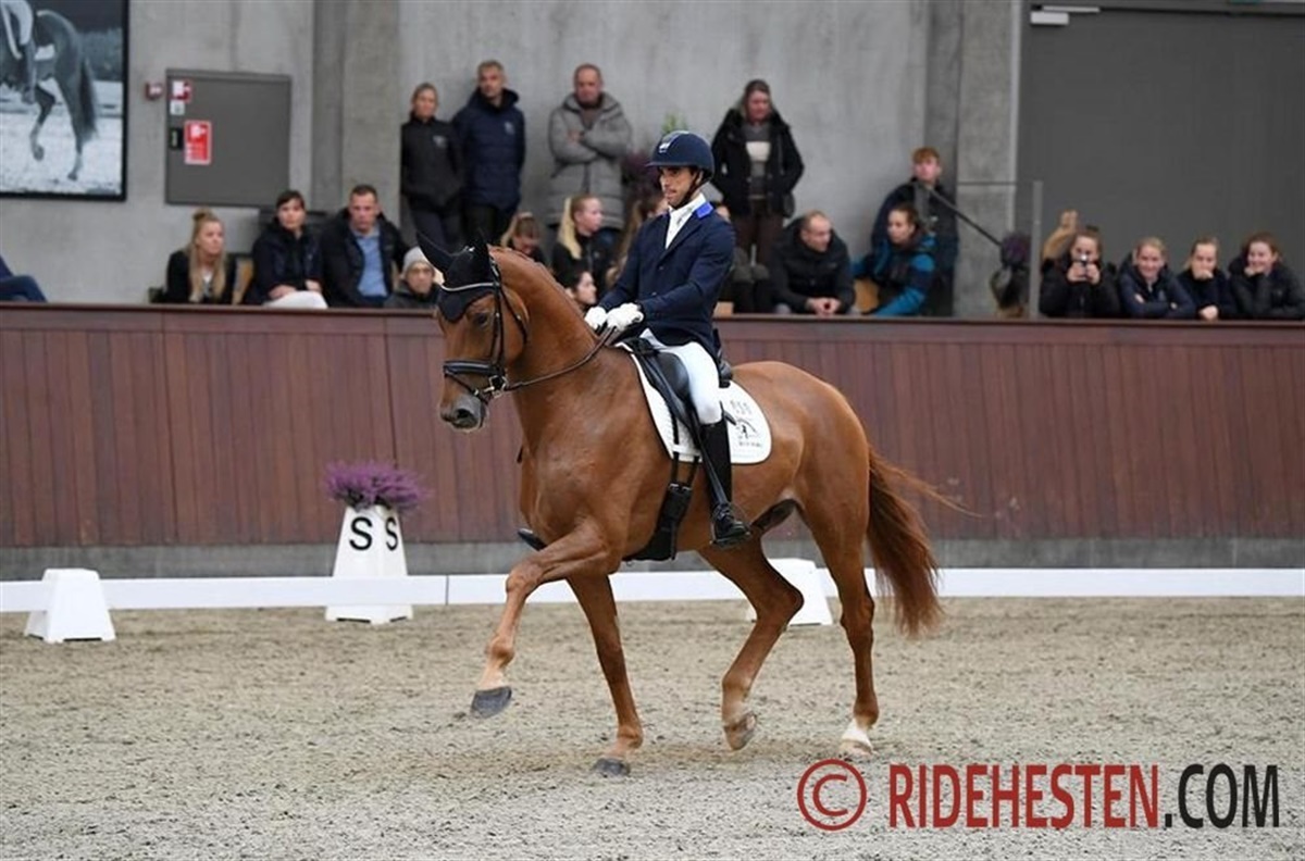 Daniel fortsatte den gode stime i torsdagens anden klasse, hvor han med 73,380% red den 9-årige oldenburgervallak Visconti e. Vivaldi/ Just Perfect til sejr i MA1. Visconti er tidligere blevet redet af den forhenværende Blue Hors-rytter Christian Tudela Ruiz, som bl.a. viste vallakken frem i Pavo og DRF's championatsfinale for 6-års heste i 2022. Nu er Visconti i Daniels varetægt, og dagens ridt var ekvipagens første stævnestart sammen.