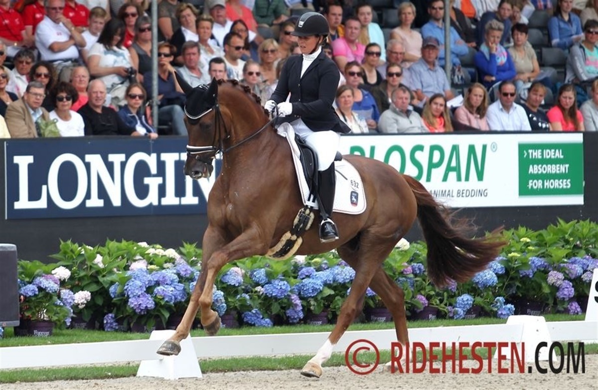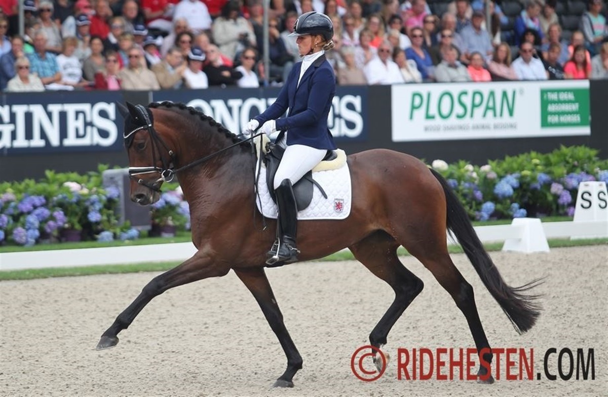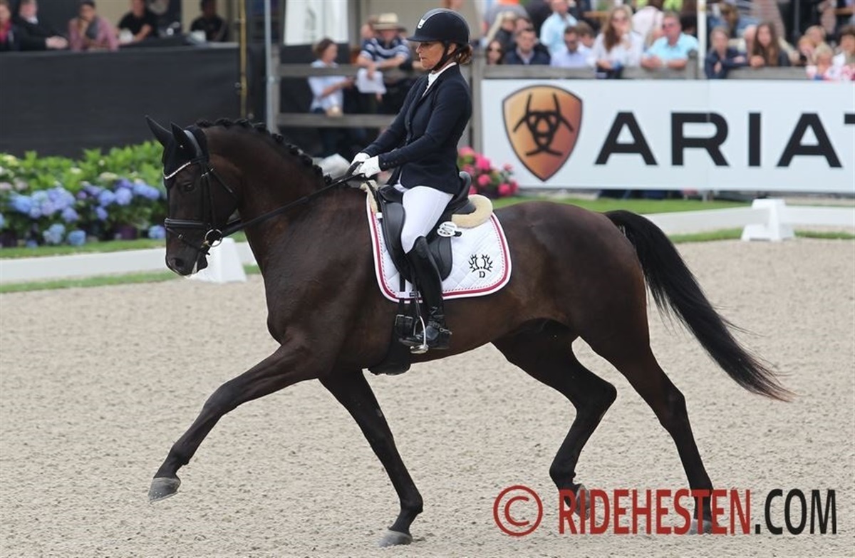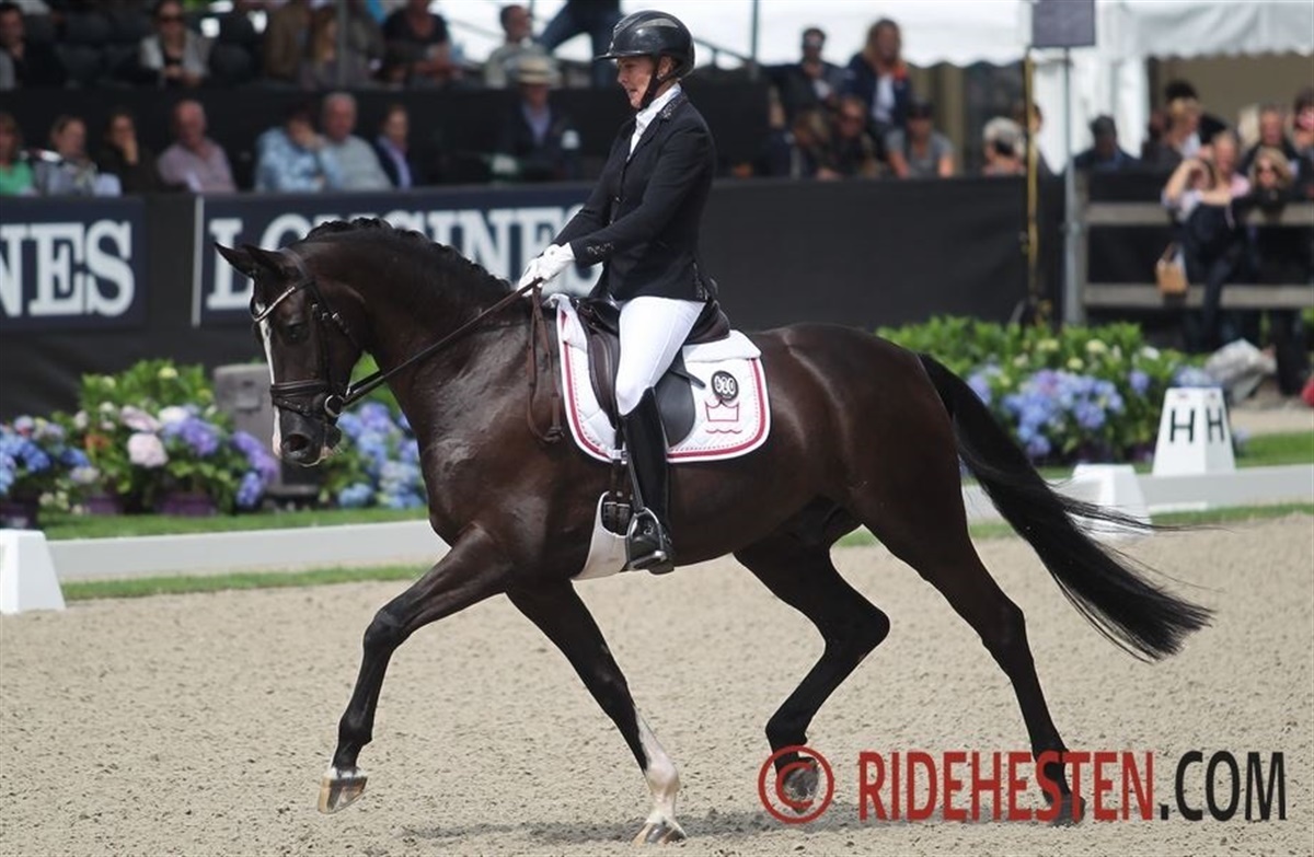 Danskerne leverede fremragende ridning i 6-års finalen i dag, hvor danske Kristine Møller, der nu rider for Luxemburg, blev nr. 12 med Jens Thorsens trakehner Standing Ovation e. Imperio/ Consul. To danske ryttere delte ottendepladsen; nemlig Sanne Henningsen med Wilson Stensvang e. Wilkens/ Blue Hors Don Schufro (opdr. Lene og Egon Fræhr Schmidt) og Katrine Kraglund med den danskejede tyske hest Bohemian e. Bordeaux/ Samarant begge med 83,40%.