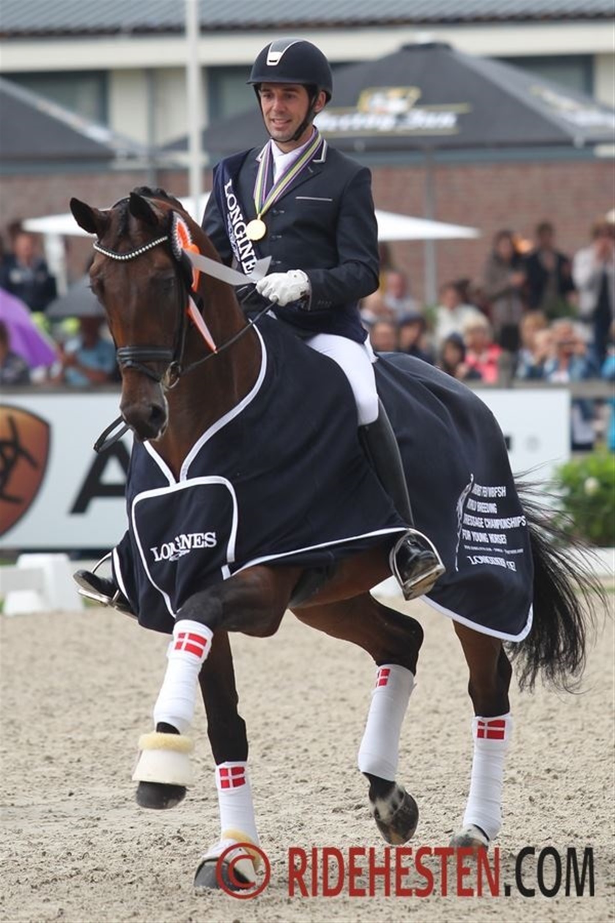 Sidste års vinder af 5-års UVM i Verden, Fiontini og Severo Jurado, genvandt verdensmestertitlen ved UVM i Ermelo i dag, hvor de danske ryttere overgik sig selv fuldstændigt! Altså endnu en UVM-guldmedalje til Dansk Varmblod - for anden gang til Fiontini e. Fassbinder/ Blue Hors Romanov (opdr. Hanne Lund og Henrik Hansen).