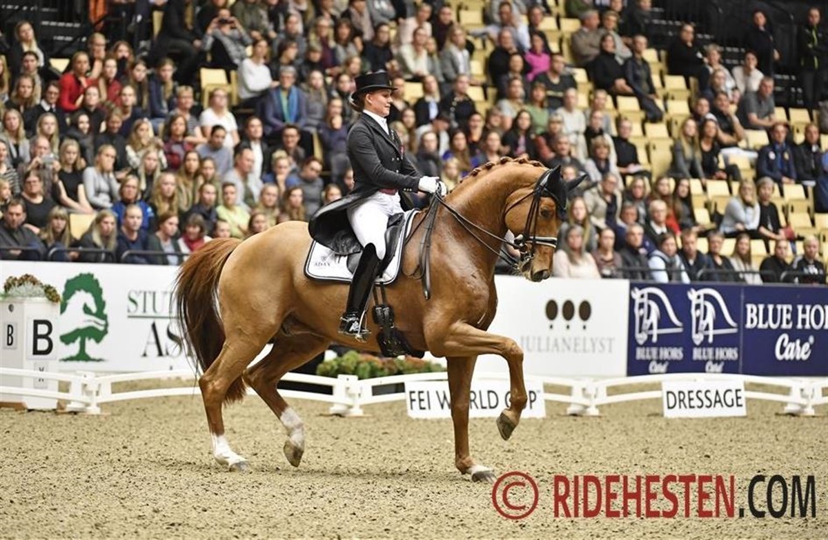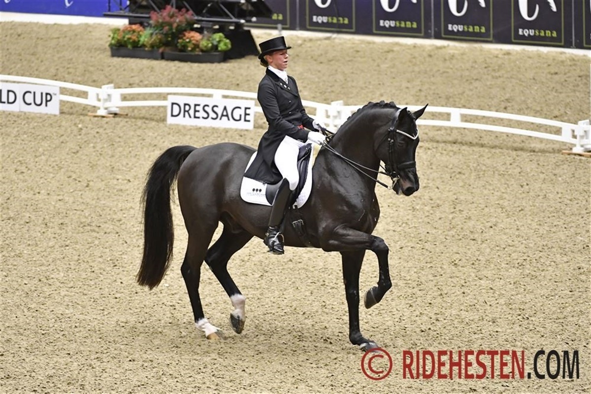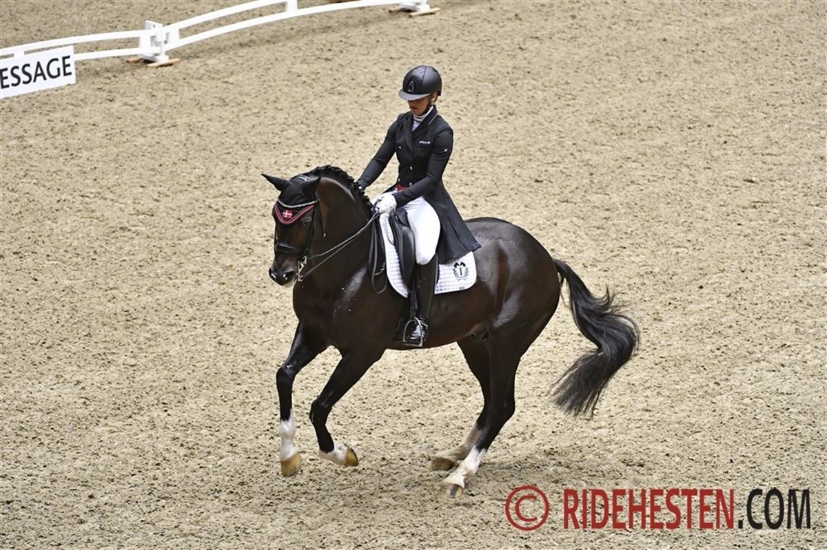Så red tyske Isabell Werth på banen med Don Johnson FRH, der nærmest virkede som var han blevet en halv meter kortere siden Grand Prix klassen i går i Boxen - Isabell red en vis legemsdel ud af de hvide ridebukser og gav os en demonstration af klassisk grunduddannelse, perfektion og vinderinstinkt. Hun var den første til at bryde 80% for hun satte barren højt med 83,755% Så var presset maksimalt på de efterfølgende.