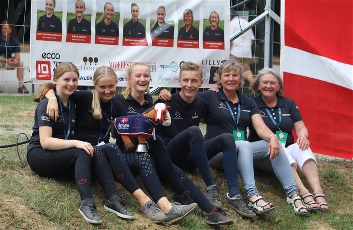 Med et samlet resultat på 143.513 %, ligger Danmark lige nu til en foreløbig sølvmedalje, men alt kan ske. I morgen rider endnu to danske ryttere, Sara Aagard Hyrm på Der Harlekin B og Louise Fauerholm Christensen og Vegelins Goya på banen, hvor holdkonkurrencen afgøres.