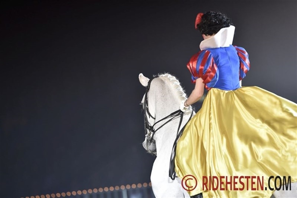 Prinsessen på den hvide hest blev yndefuldt repræsenteret af Mai Tofte Olesen på Rustique. De syv små dværge var på humoristisk vis ledsaget af 7 sorte shetlændere fra Shetlænderforeningen.