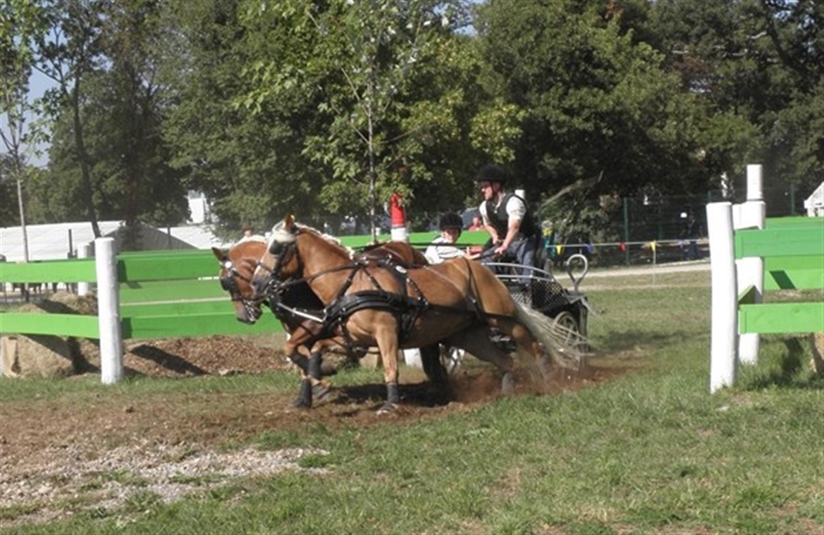 Lars Dau fra Slesvigske Køre Selskab kører med to haflingere af egen avl. Kristina Klindt fra Dansk Køre Selskab kører 1-spænder med lipizzaneren Pluto Callisto som er avlet hos Lise og Lars Heibing på Stutteri Ordrupdal. Guldmedaljevinderen i dressur i torsdags, Peter Koux fra Dansk Køre Selskab, blev nr. 22 i maratonen og ligger på en 6. plads før forhindringskørslen i morgen. Taffy som hans pony hedder, har det med at gå i stå i forhindringerne, det er som om det nogle gange bare ikke passer ham at være hurtig i forhindringerne. Lige så snart de er ude på ruten vågner han op og er frisk og fremadsøgende igen. Niels Schelde-Petersen havde et uheld i forhindring 6, hvor brillen på vognstangen, som koblet er sat fast i, knækkede i den ene side. Michæl Irming som var groom (hjælper) på vognen fik bundet et reb på, som erstatning for koblet, men for ikke at skade ponyen med den spidse del som var blevet tilbage, valgte Niels at køre forsigtigt i mål, så ingen kom til skade. Man får 10 strafpoint, når ens groom er på jorden, så vinderchancen var væk. Der er i den grad lagt op til en nervepirrende dag i morgen. Kristina Klindt skal starte som anden sidst og der er næsten ingen forskel i stafpoint til hverken den der er foran hende, tyskeren Dennis Schneider der har 114,73 strafpoin, og lige efter, svenskeren Susanne Ankermark med 116,76 strafpoint. Peter Koux er bestemt heller ikke afskrevet fra at få medaljer med 120,39 strafpoint, og hvis han, som han plejer, kører en fejlfri tur, skal der ikke 2 bolde og lidt tidsfejl så er han verdensmester. I 2-spand klassen kan en heldig Lars Dau også sagtens komme op ad ranglisten, især hvis han kører en dobbelt nulrunde, det vil sige ingen fejl på bolde og tid. Kilde: Pressemeddelelse