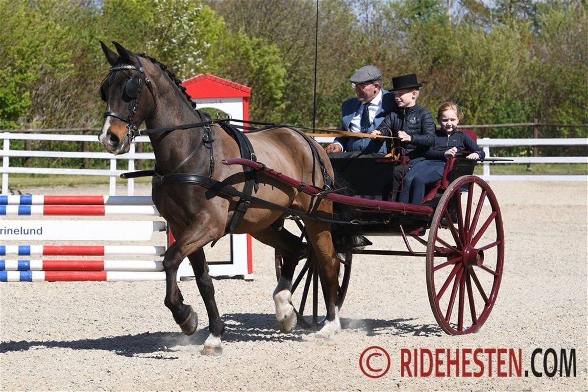 Traditionen tro åbnede hingstefremvisningen med, at Ibs fars gamle gig kom kørende ind på ridebanen. Denne gang med Ib og Maries børn, Martin og Ea Marie, hvoraf det var Martin, der flot styrede gig'en rundt.
