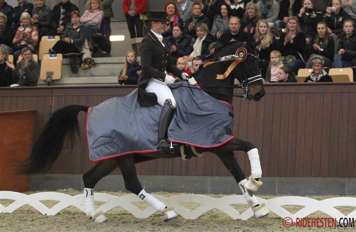 Gårsdagens nr. 2, Marlene Storkborg og 11-årige Fritz e. Blue Hors Romanov/ Classic (opdr. Andreas Seemann), holdt i dag sin andenplads i küren og sammenlagt med 145,138%. På tredjepladsen i går og ligeledes i det samlede regnskab så vi endnu en 11-års hest og denne gang ikke efter Blue Hors Don Romantic men hans far Blue Hors Don Schufro; der er selvfølgelige tale om hoppen Donna Charian, der blev forbilledligt præsenteret af Karina Nevermann Torup og sluttede sammenlagt med 143,666%.