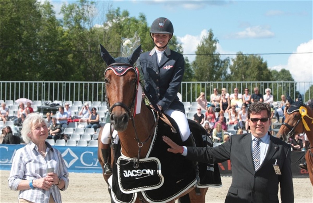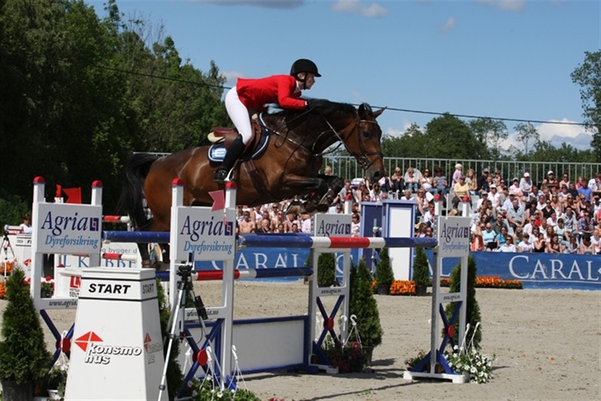 Af Rebecca Mender - Zamiro har vært helt super her, vi vant på torsdag, hadde noen hviledager – og slo til igjen i dag, smilte Tina etter seieren som trivdes på en teknisk krevende Grand Prix bane. Det store norske publikum jublet også i det deilige solskinnet for Tinas seier – og ikke minst jublet de over at norske Tony André Hansen tok andreplassen med sin store Camiro. Ønsket seg denne seieren Tina Lund har tidligere gjort det godt i Grand Prix-klassen i Drammen – en andreplass i 2005 er på hennes merittliste. Nettopp derfor smakte det godt å komme helt til topps i dag. – Det var fedt å slå de norske her i dag, slo Tina fast etter klassen og smilte til Tony André Hansen. Grand Prix-klassen ble etter lørdagens regn flyttet fra gressbanen til sandbanen – stevnearrangørene tok avgjørelsen rundt midnatt og stod for tidenes flyttejobb med å få tribuner, hinder og VIP-stand over til sandbanen. – Jeg er riktig glad for at de flyttet til denne arenæn, her var underlaget helt topp, og det ga også god stemning at publikum kom tettere på banen, sa en fornøyd Tina. – Og Zamiro er god på sand – det passet også godt! Kun fire feilfrie Overgangen fra stor gressbane til en litt mindre sandbane gjorde at rytterne måtte omstille seg en del – det ble noe mer som innendørshopping. Jennifer red en elegant grunnomgang, men tok med seg fire feil i omhoppingen. – Det var en stor, teknisk bane, man måtte omstille seg. Men det var også en veldig god bane, sa Jennifer, fornøyd med sin Rimini.