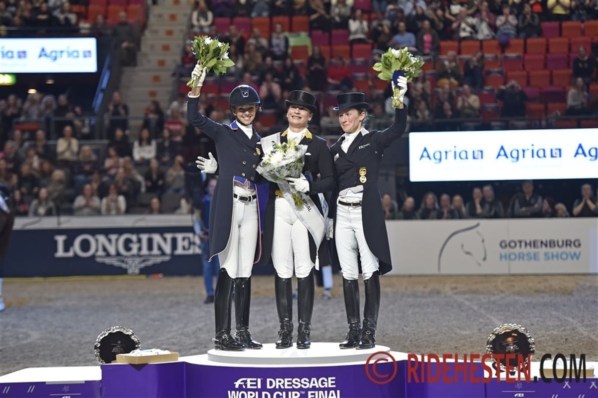 Tyske Isabell Werth viste endnu engang at hun kan levere en pragtpræstation, som ingen kan slå, når det virkelig gælder, og dermed kunne Werth sammen med Weihegold e. Blue Hors Don Schufro/ Sandro Hit lade sig hylde som vinder af World Cup-finalen endnu engang. Parret red en fantastisk Kür, som blev belønnet med hele 88.871 %. Ovenikøbet er det et hattrick for ekvipagen, da de vinder finalen for tredje år i træk.
