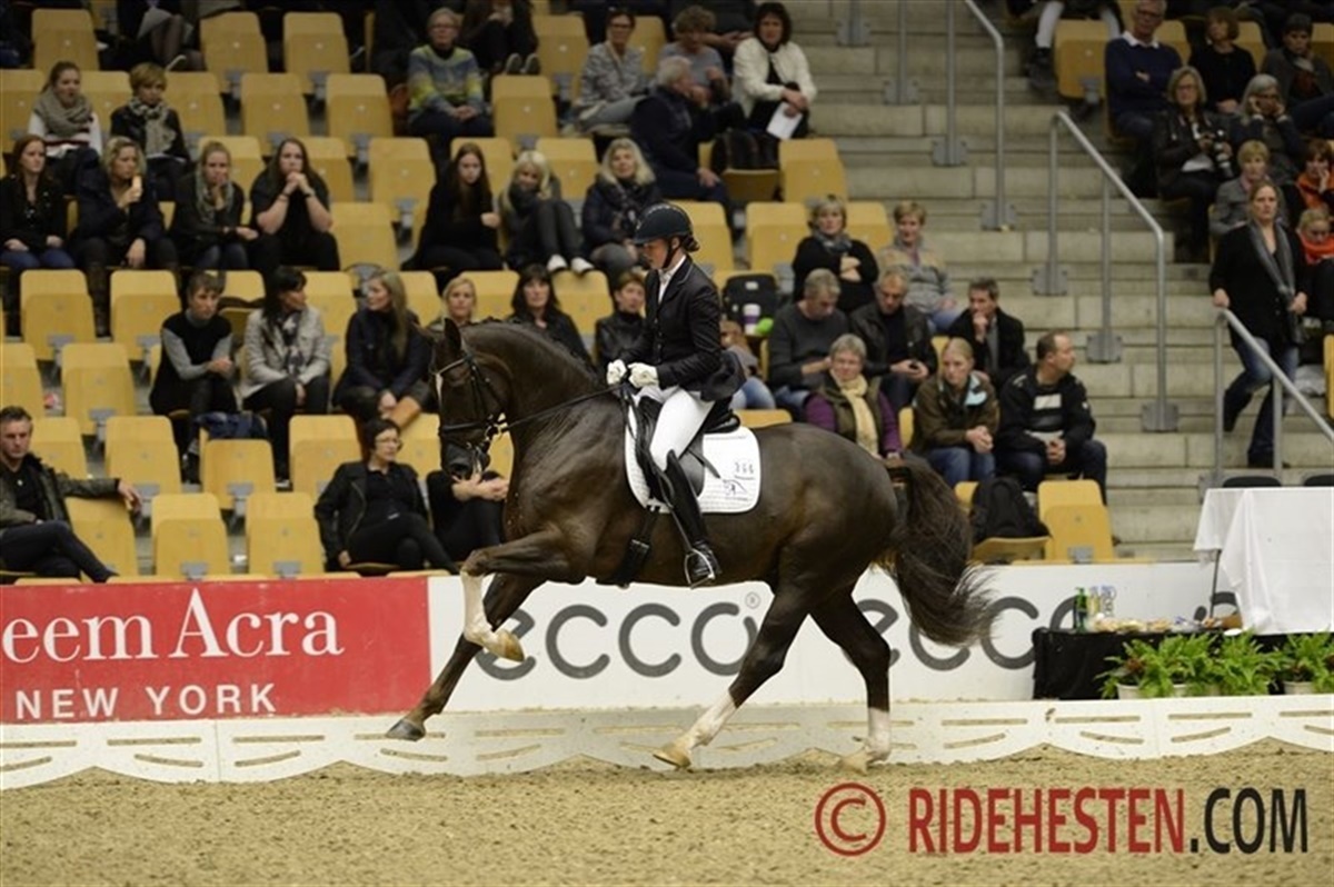 Første rytter var vinderen af kvalifikationen Maria Anita Andersen og Katholt's Bossco e. Blue Hros Don Schudro:Trav med god takt og balance dog mangler hesten lidt styrke 8,5 skridten er afspændt og taktfast mere skulderfrihed ønskes 8,4 galoppen god takt og bæring og pæne changementer 8,7 lydig hest med god kontakt velredet 8,7 kapacitet 8,7 ialt 8,60