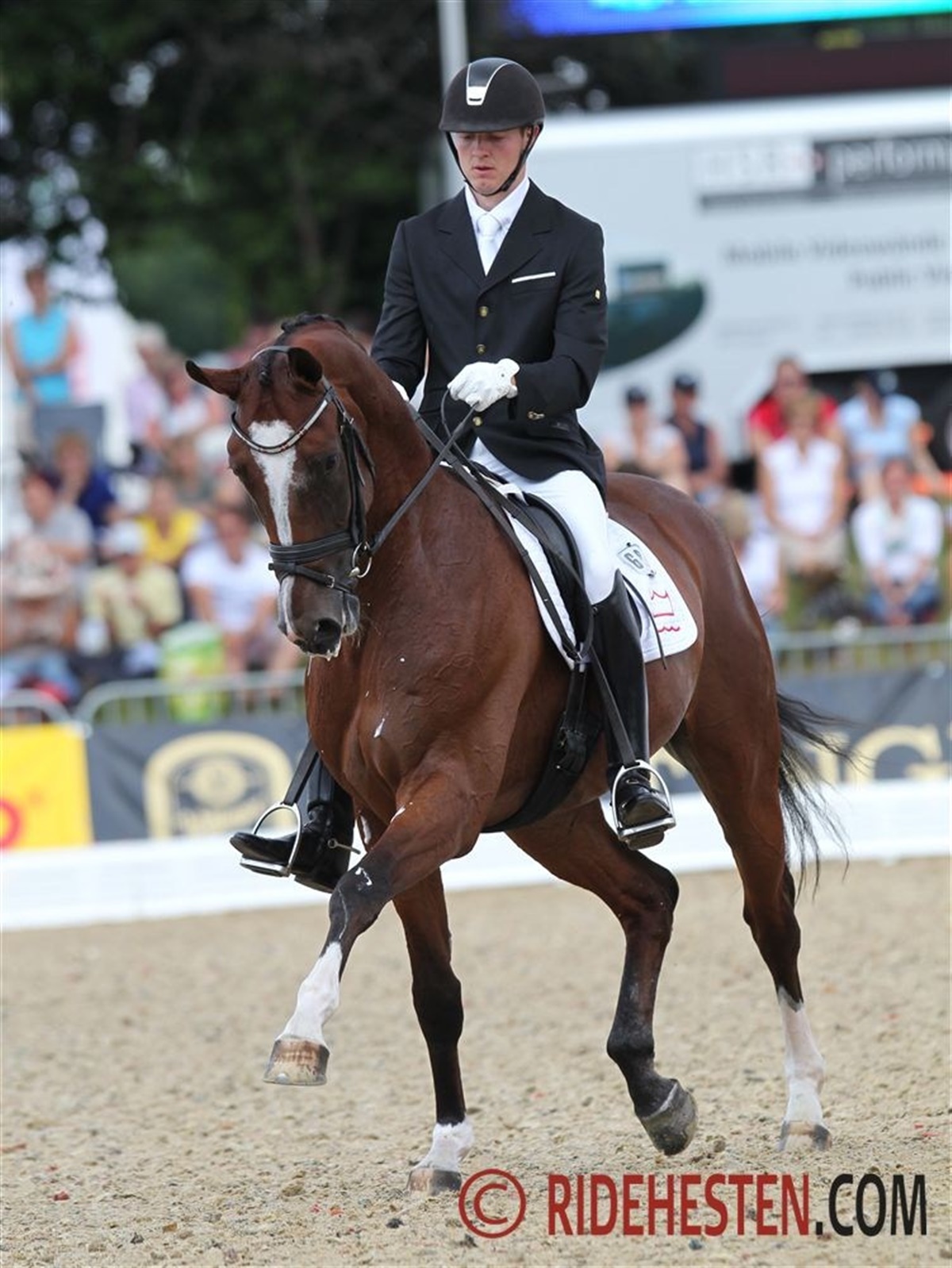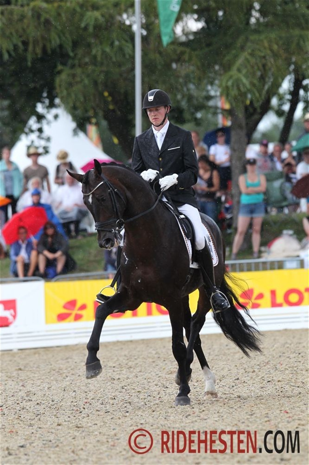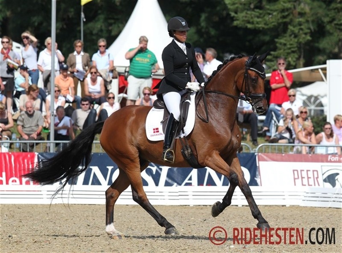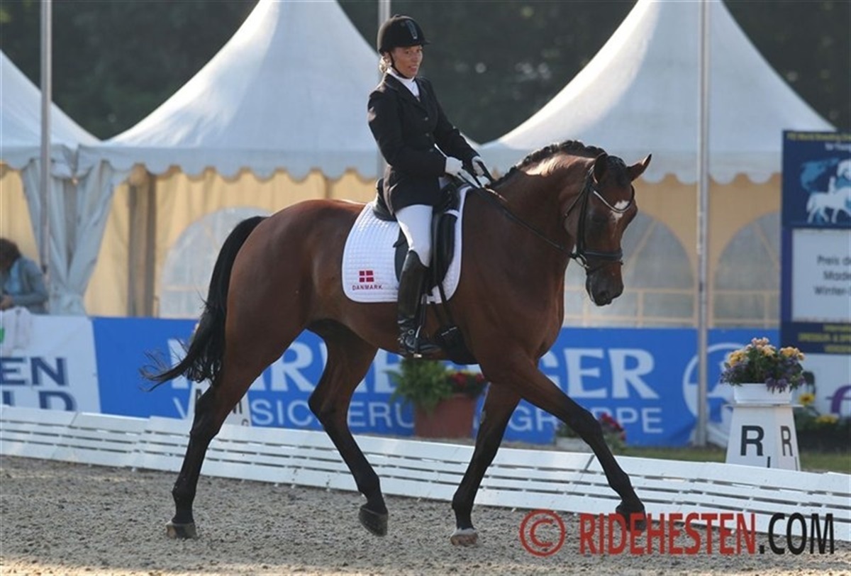 dag var det 6-års hestenes tur til at komme i aktion i VM Arenæn i Verden. Bedste danske ekvipage i dag blev Jim Rasmussen på Samba King e. Sandro King - efter et flot program, hvor især traven imponerede, lød scoren på 8,52, hvilket rakte til en 7. plads i klassen, og det resultat udløste dels en 1. plads i deres gruppe, og dels en direkte billet til 6-års hestenes finale på søndag. Klassens allerførste rytter var Laura Mølvig på sin egen Atterupgaards Wolfgang e. Welt Hit II, og de leverede et sikkert ridt, hvor skridten fik den højeste karakter, nemlig 8,3. Den samlede score lød på 7,98 og en placering som nr. 16 i klassen. Andrea Woodard på Højersmindes Rolex e. Blue Hors Romanov havde ikke deres bedste dag. Rolex virkede meget spændt og påvirket af de store omgivelser i Verden, og trods Andreas ihærdige arbejde for at få hesten til at slappe mere af, fik den stort ikke vidst skridt. Den samlede score lød på 6,22 point. Thomas Sigtenbjerggard var til start på to heste i 6-års klassen. På DV-hesten N.O.H.'s Daijoubo e. Daddy Cool blev det til en samlet score på 8,16 point, og en placering som nr. 14. Dommerne var især imponerede over Daijoubos lette og spændstige trav, der blev honoreret med et 9-tal. Med den svenskejede hingst Sir Donnerhall II e. Sandro Hit, som Thomas er udtaget på for det tyske Oldenborgforbund, blev det til en placering som nr. 9 med en samlet score på 8,42. Også her var dommerne især glade for traven som fik karakteren 9,3. Som forventet blev klassen vundet suverænt af den engelske hoppe Woodlander Farouche e. Fürst Heinrich med Michæl Eilberg i sadlen. Hoppen scorede 9,42 point. Nr. 2 blev den hollandske ekvipage Emmelie Scholtens på hingsten Borencio e. Florencio, der scorede 9,16. Se resultatet af klassen her: HER Senere i dag afvikles trøstefinalen for 5-års hestene, hvor tre danske ekvipager får en ekstra chance for at komme i finalen.