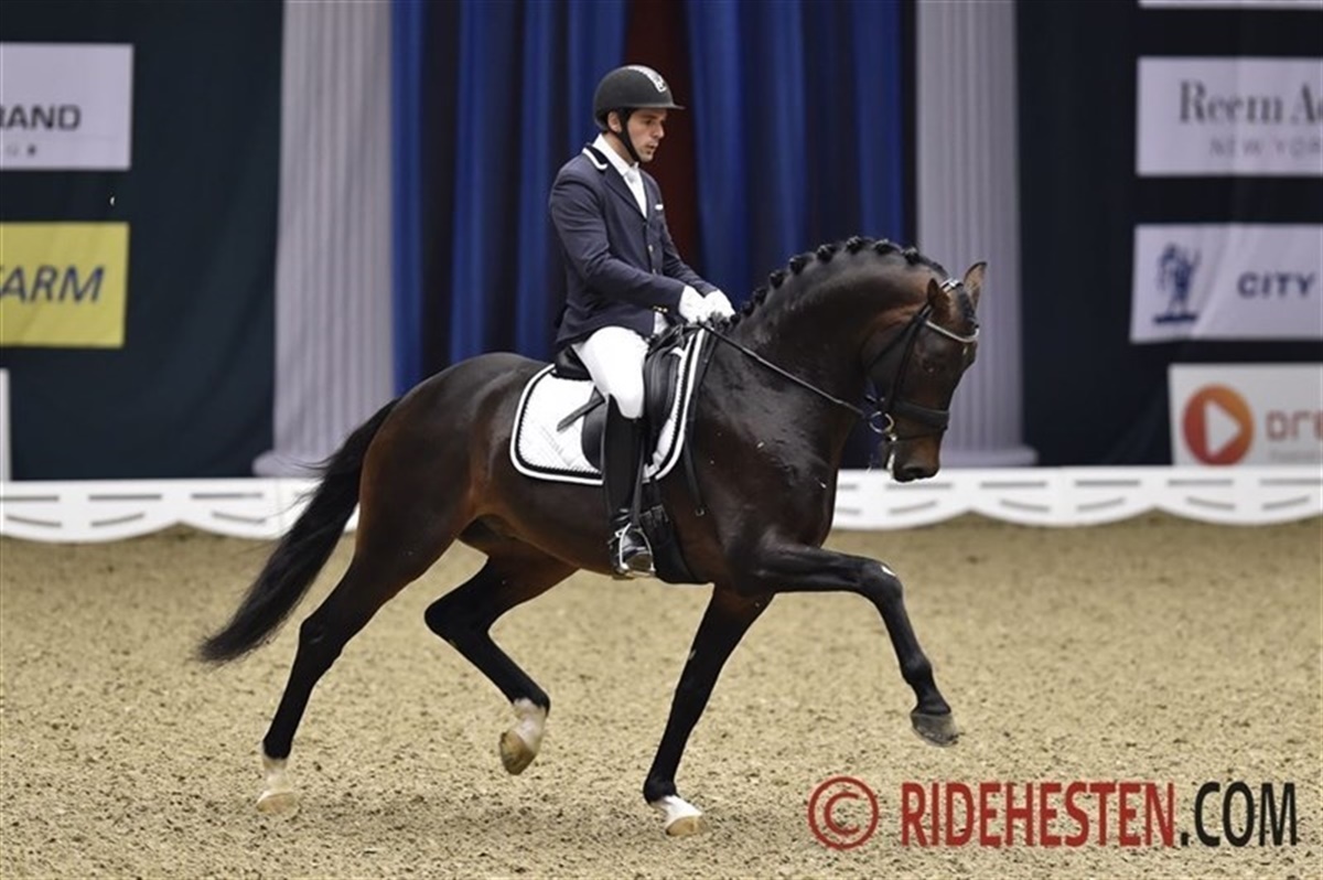 Avlshingsten Franklin e. Ampere/Ferro blev redet af Severo Jurado til tredjepladsen med samlet 8,66 med trav som højdepunktet. For den store, taktfaste og spektakulære trav fik Franklin 9,4 og 9,0 for galop.