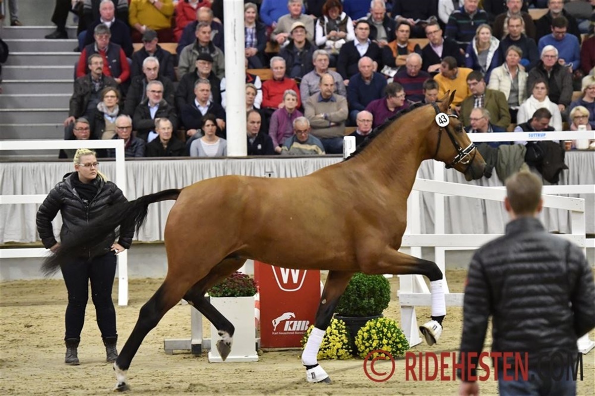 De danskejede hingste pyntede i dag i holdet af dressurbetonede hingste ved hingstekåringen i Westfalen, ikke alene i kraft af type, men måske endnu mere i kraft af et smidigt bevægelsesforløb med meget aktion i knæ og has.