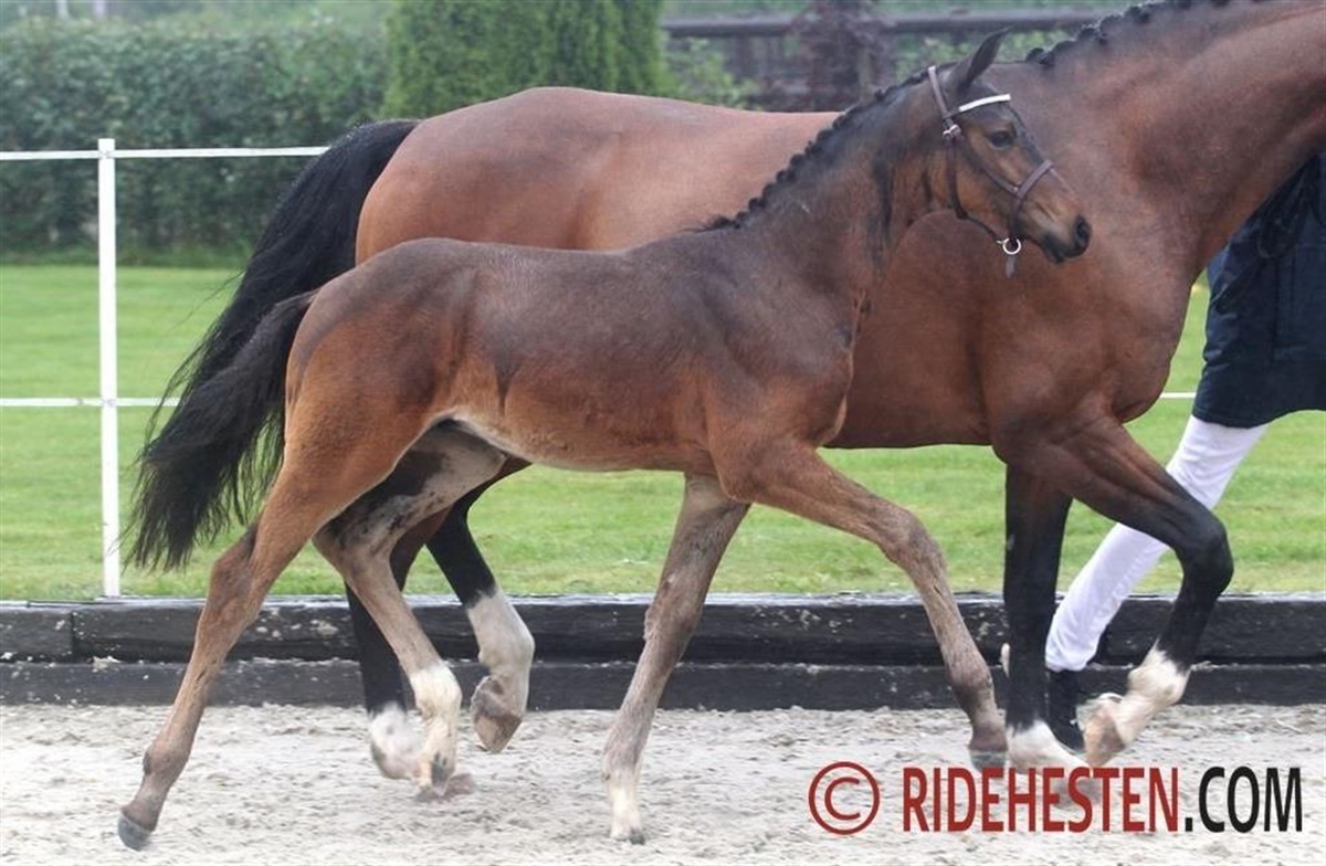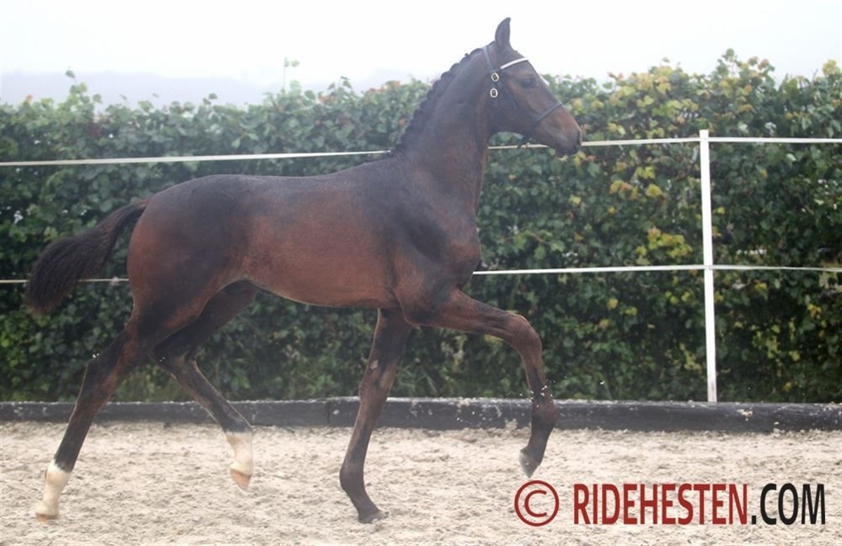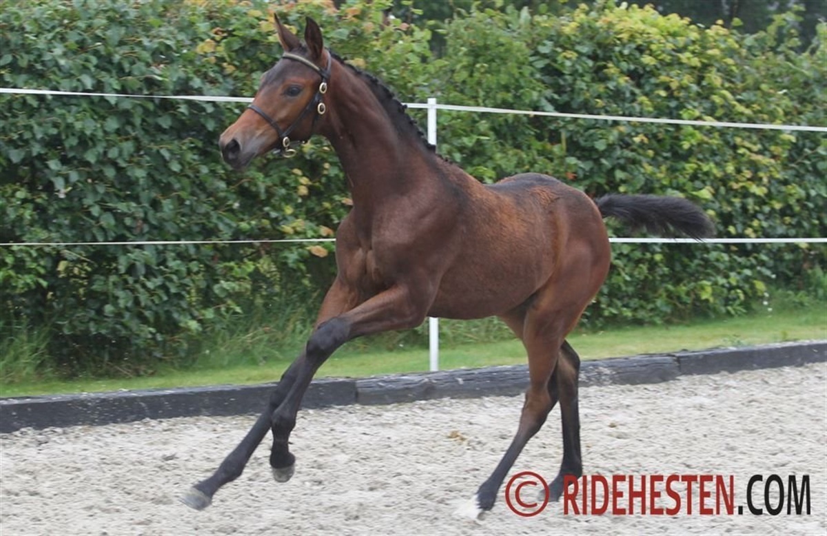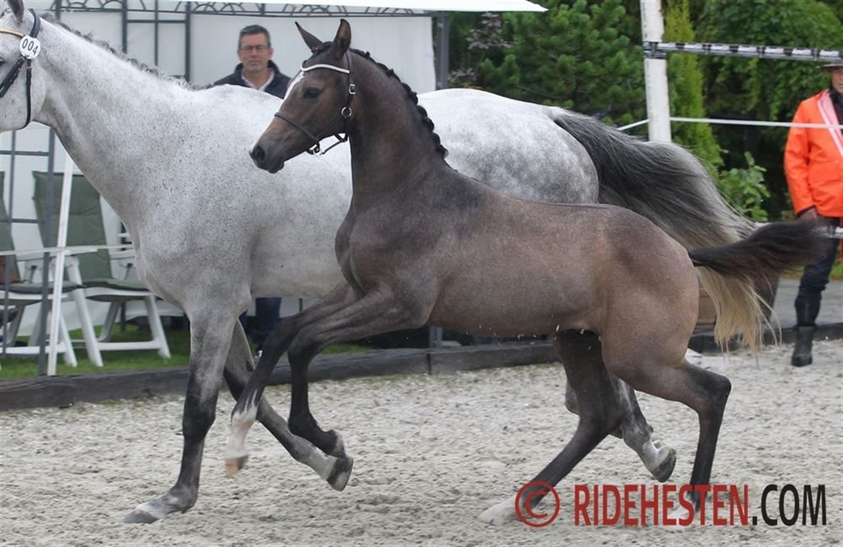 Hos de dressurbetonede hoppeføl var faderhingstene Revolution, Blue Hors Fifty Cent, Franklin, Total Hope, Springbank II VH og D’Avie. Her var flere særdeles gode føl, men særligt et skilte sig ud i kraft af en topmoderne sportstype, nemlig til ædle og højstillede Riviera e. Revolution/ Swarovski fra Tove Skansbo. Føllet demonstrede tre særdeles gode og smidige bevægelsen, hvor særligt galoppen blev fremhævet af dommerparret. Også dette dejlige hoppeføl blev udtaget til Dansk Varmblod KRAFFT Eliteskue.