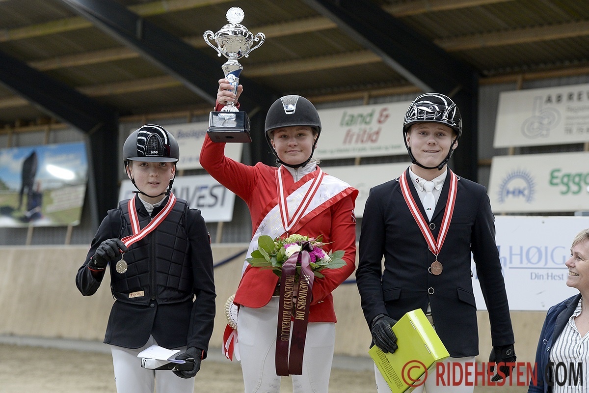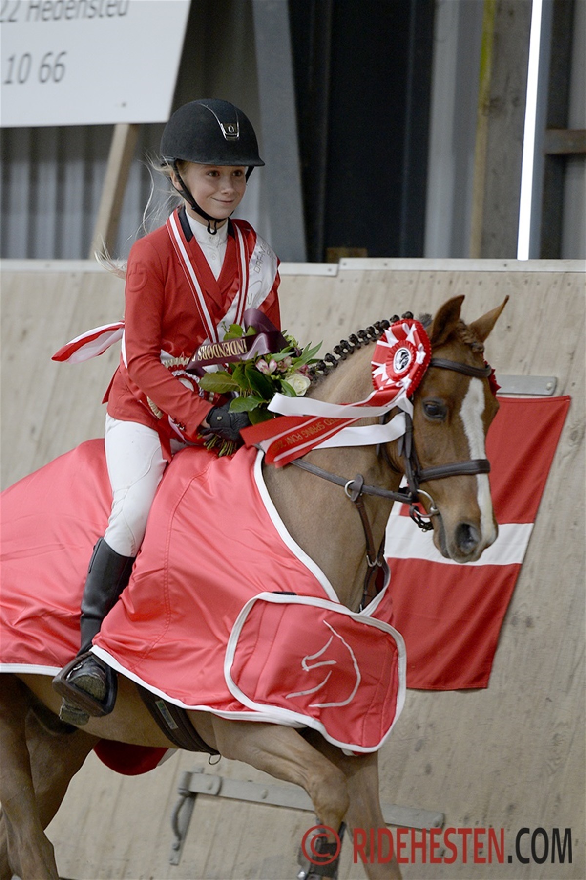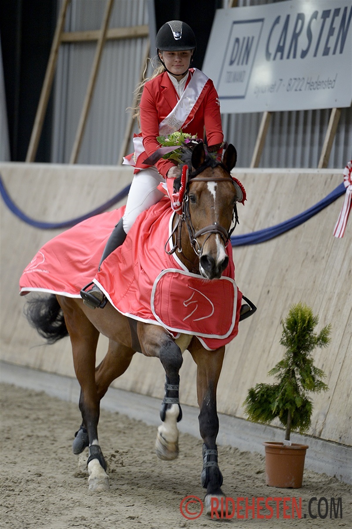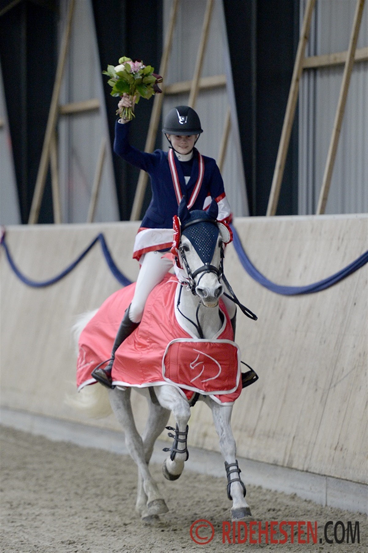 Kategori I ponyerne sluttede med spænding, da en omspringning skulle fordele de tre medaljer. Maria Nørregaard Langhoff og Nikolina skulle ride sidst, men var hurtigst, og som lokale i Hedensted og Omegns rideklub var der kæmpe fra tilskuerne da de red gennem mål. De tog hermed guldet, mens sølvet gik til Annestine Kibech Hansen på Poetic Kelly, og bronzen gik til Josefine Sandgaard Mørup på Bebo Com.