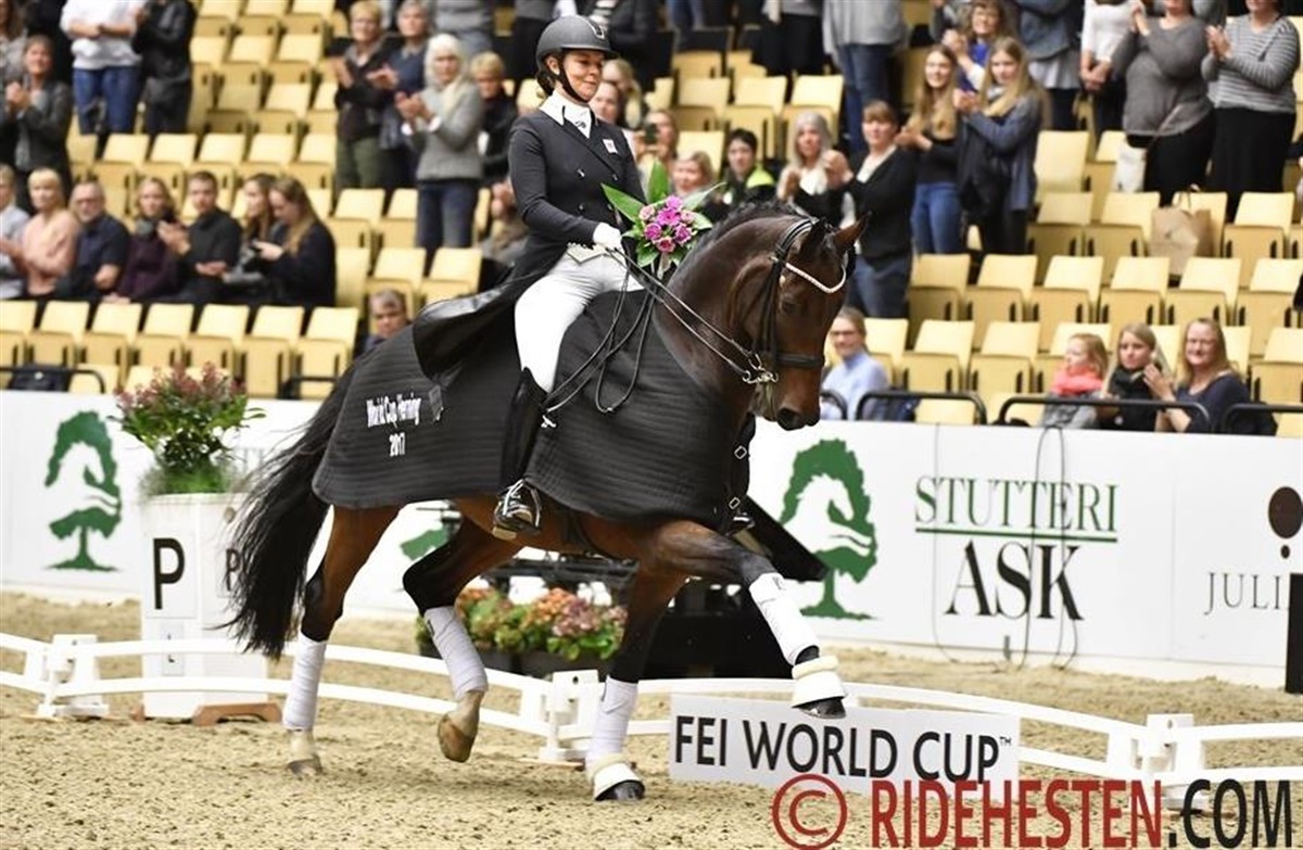 Med 70,9% sikrede Anna sig sejren foran tyske Janina Siemers/Scaramouche som var helt tæt på Anna under hele ridtet, men da hesten sprang ud af overgangen fra den sidste piaffe blev Annas sejr cementeret med knap to procentpoints forspring. Publikum rejste sig for at juble over de tre topplacerede ryttere, da de red æresrunde, så der er en herlig stemning i Boxen i Herning.
